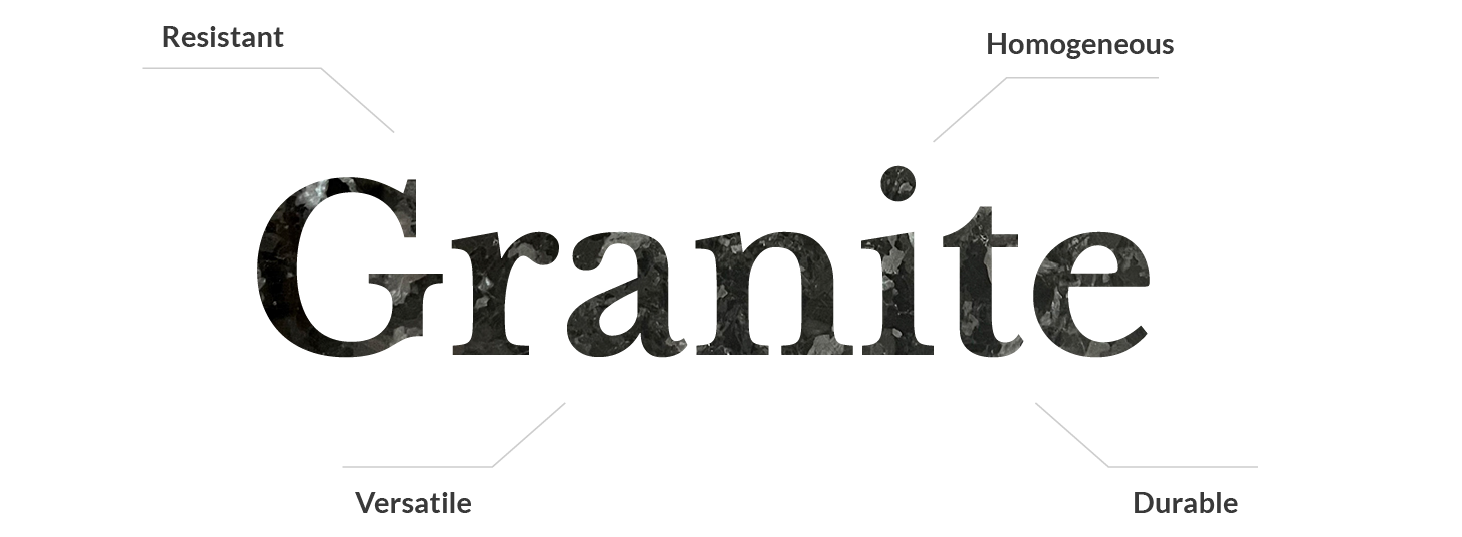 Granite represents hardness and resistance, qualities that make it an ideal material for construction and architecture. Its colours and textures make it unique. In addition, its ability to withstand extreme conditions and its low maintenance make it a sustainable and durable choice.
