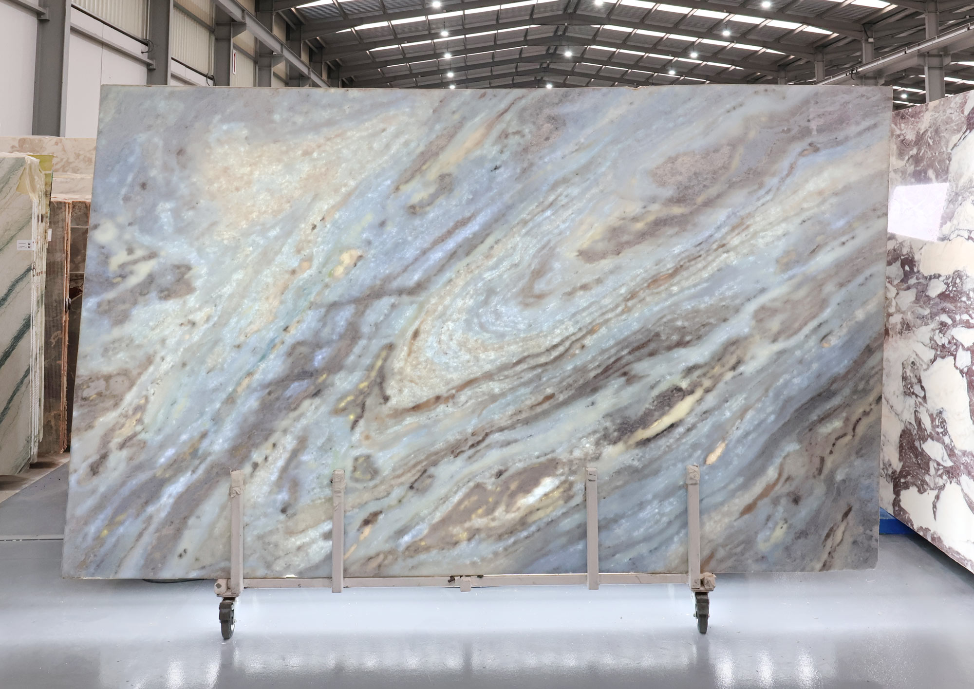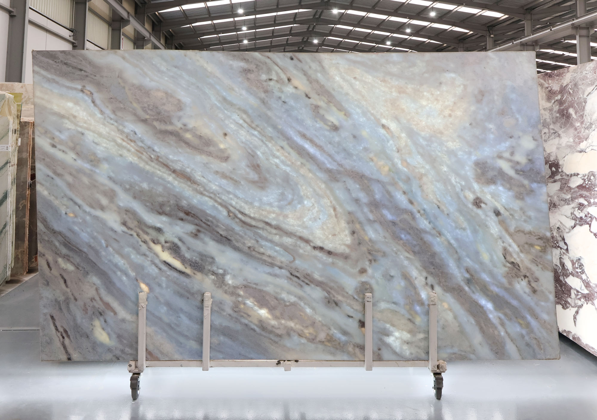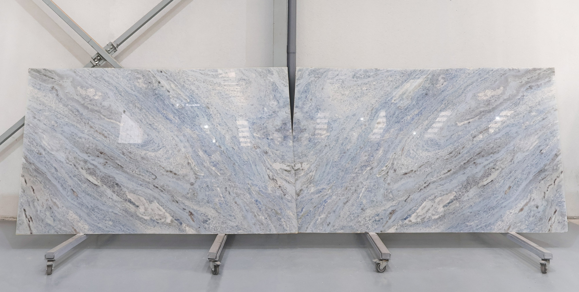Cuarcita Cristalita Azul en tablas pulidas de 2 cm de grosor. 9 tablas disponibles.
