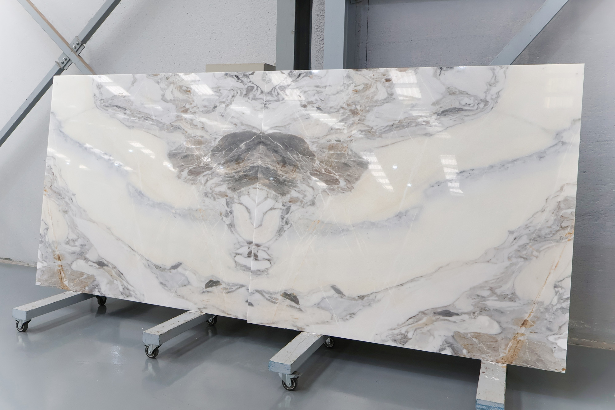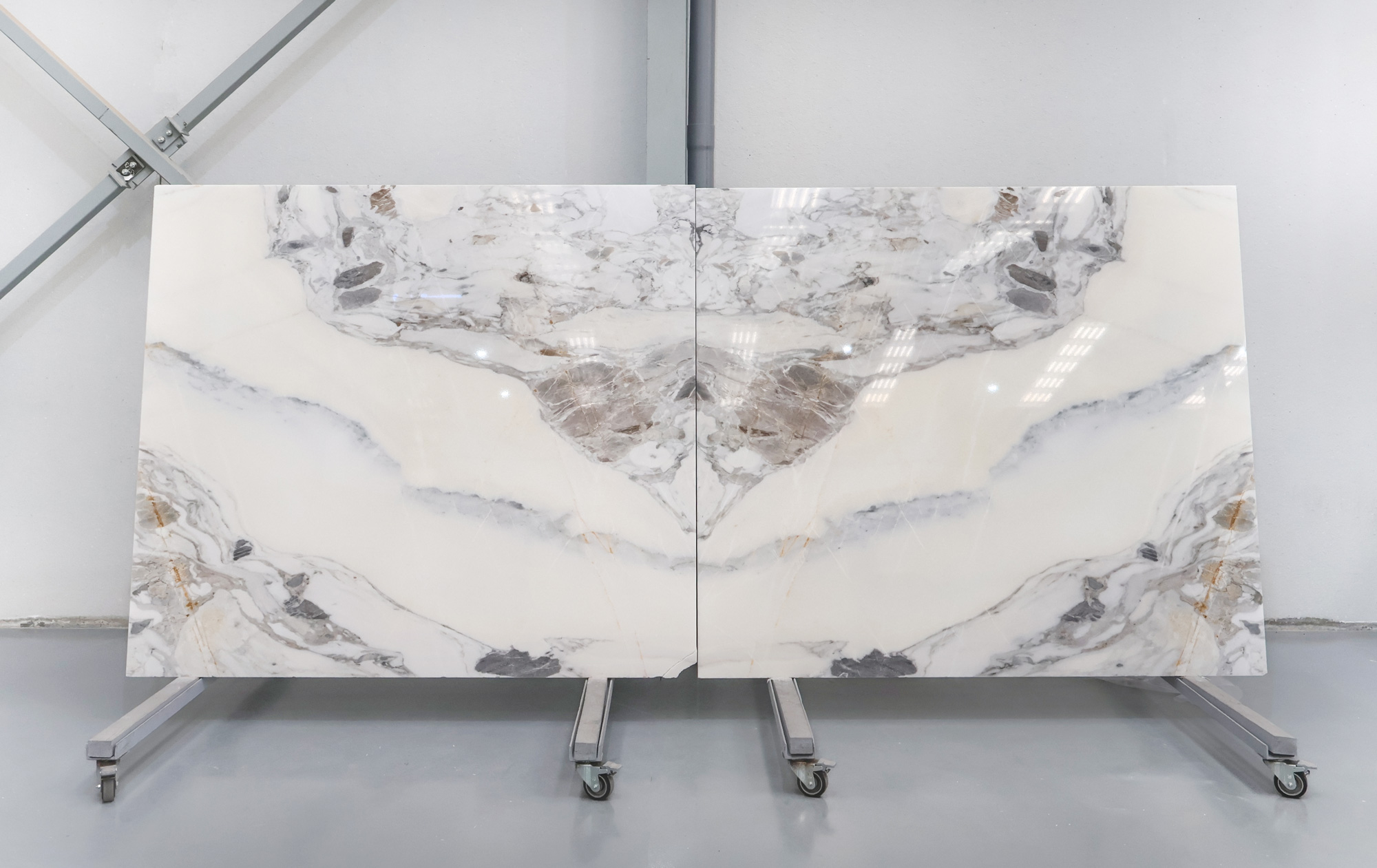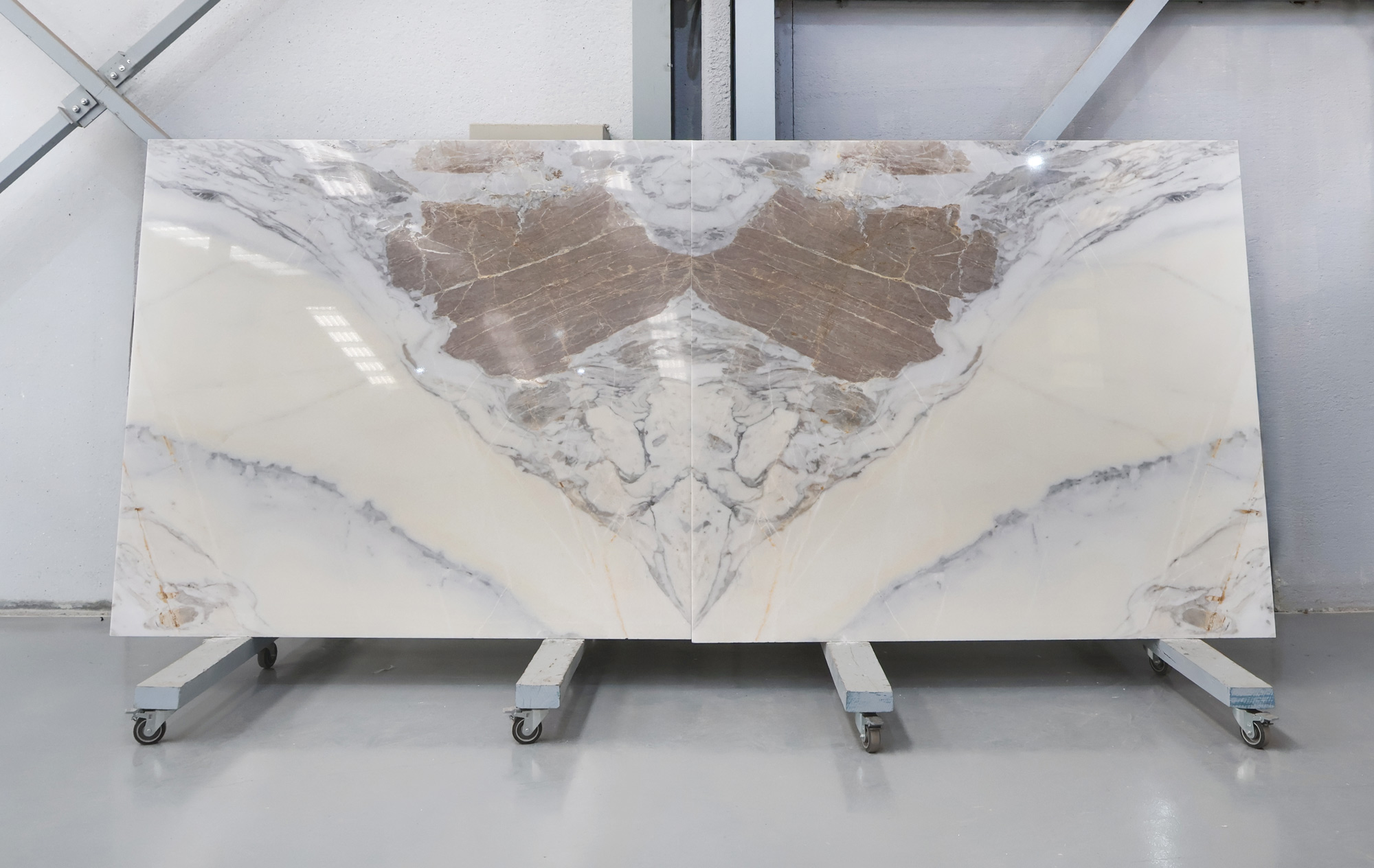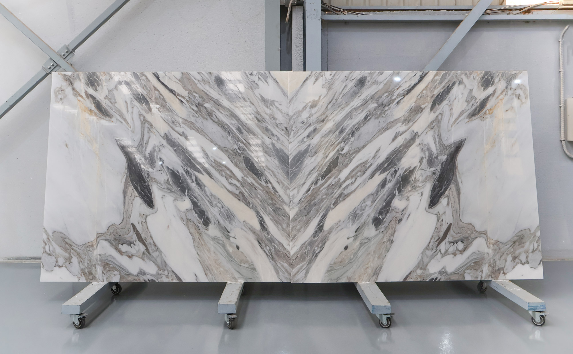 Mármol Arabescato en tablas pulidas de 2 cm de grosor.