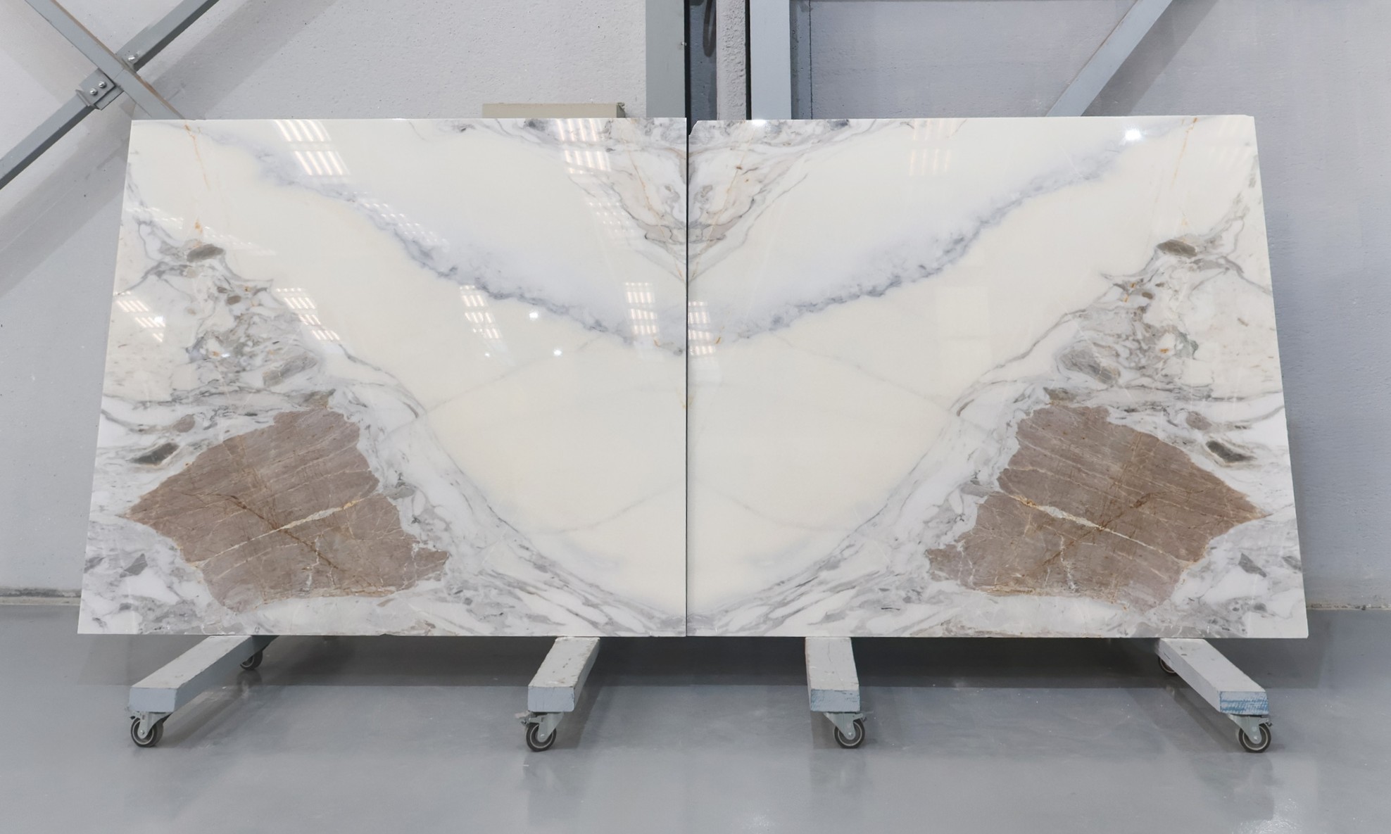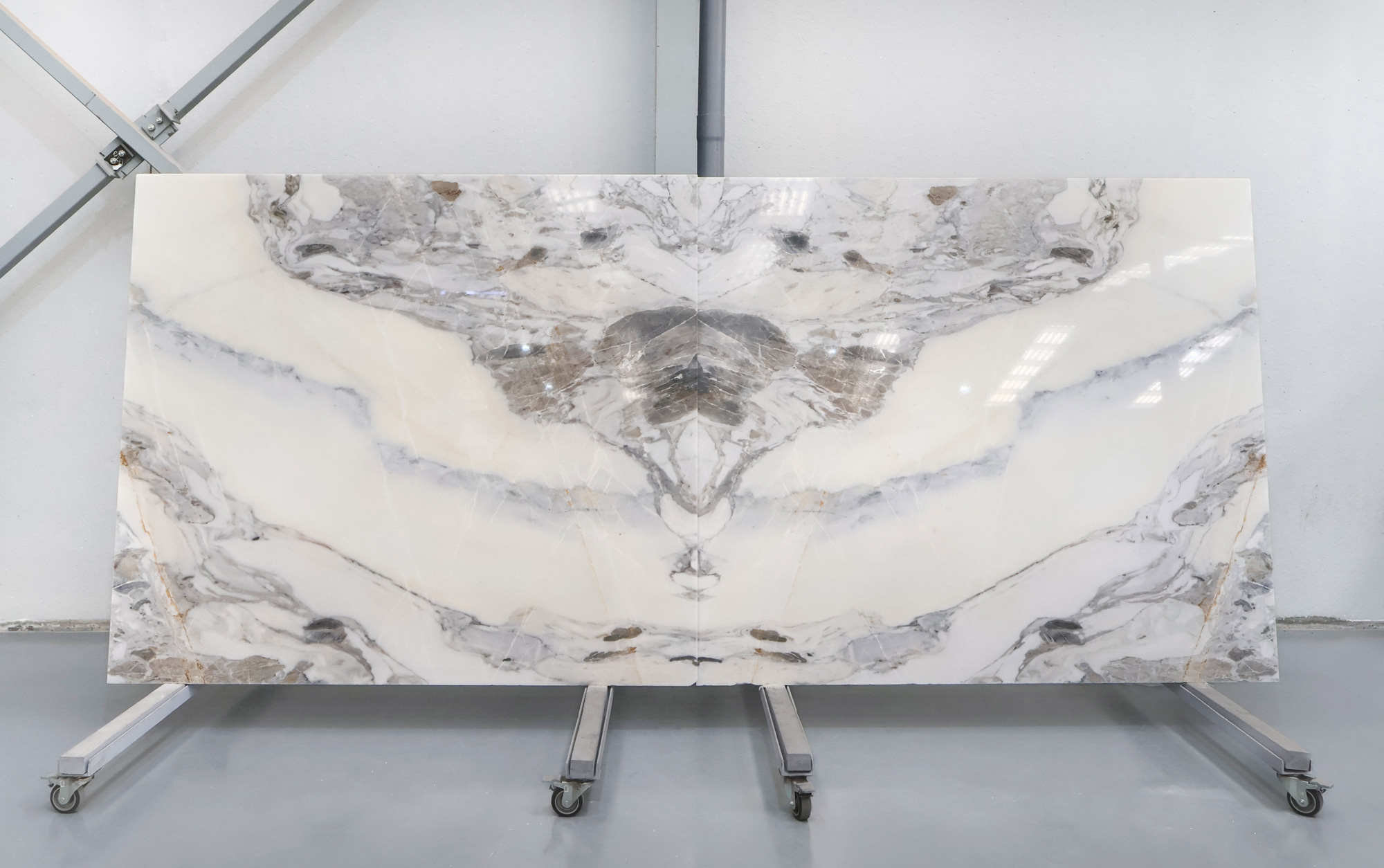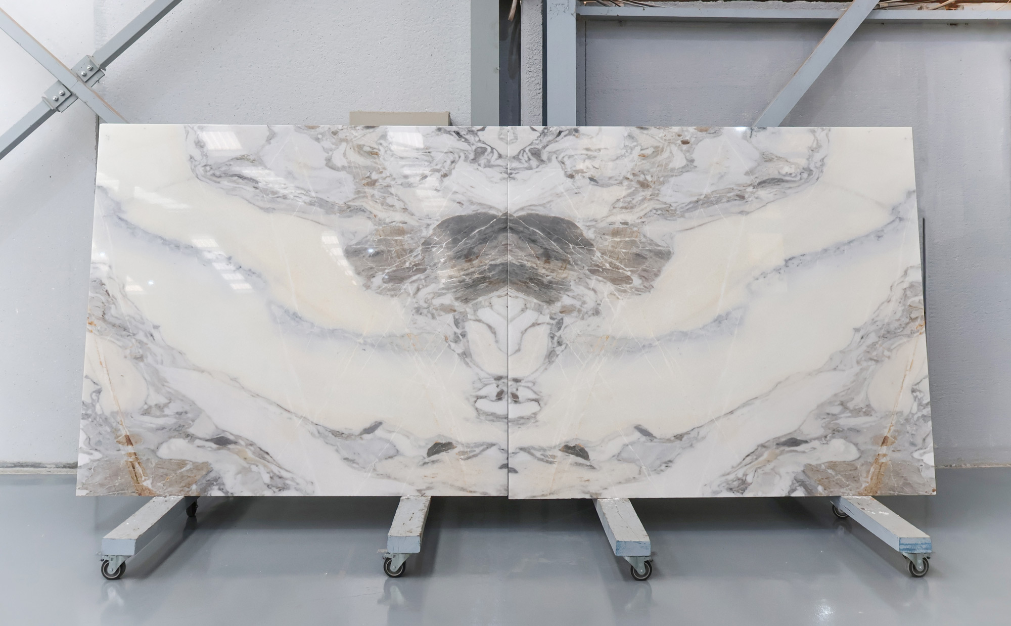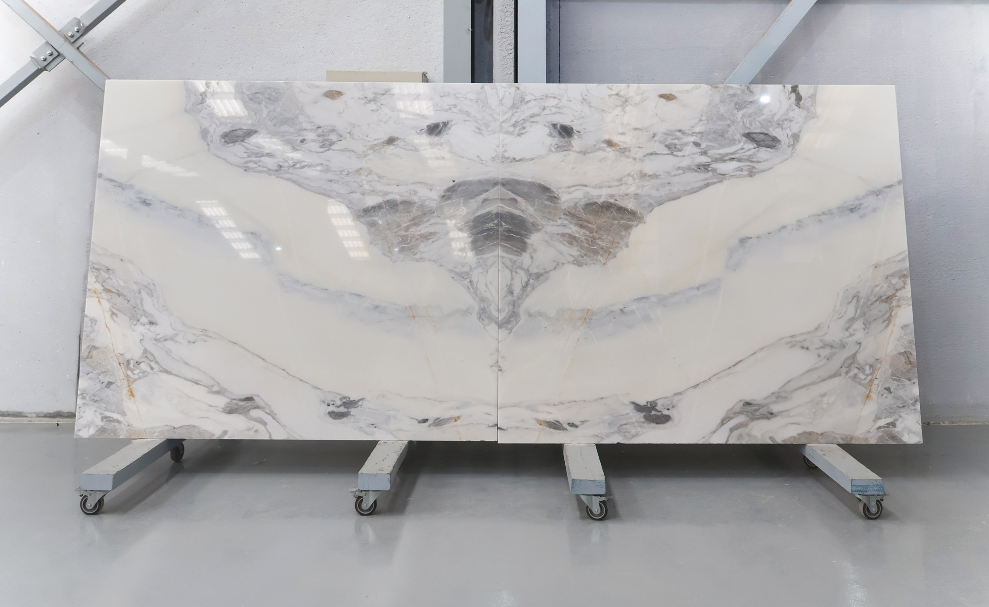 Mármol Arabescato en tablas pulidas de 2 cm de grosor.