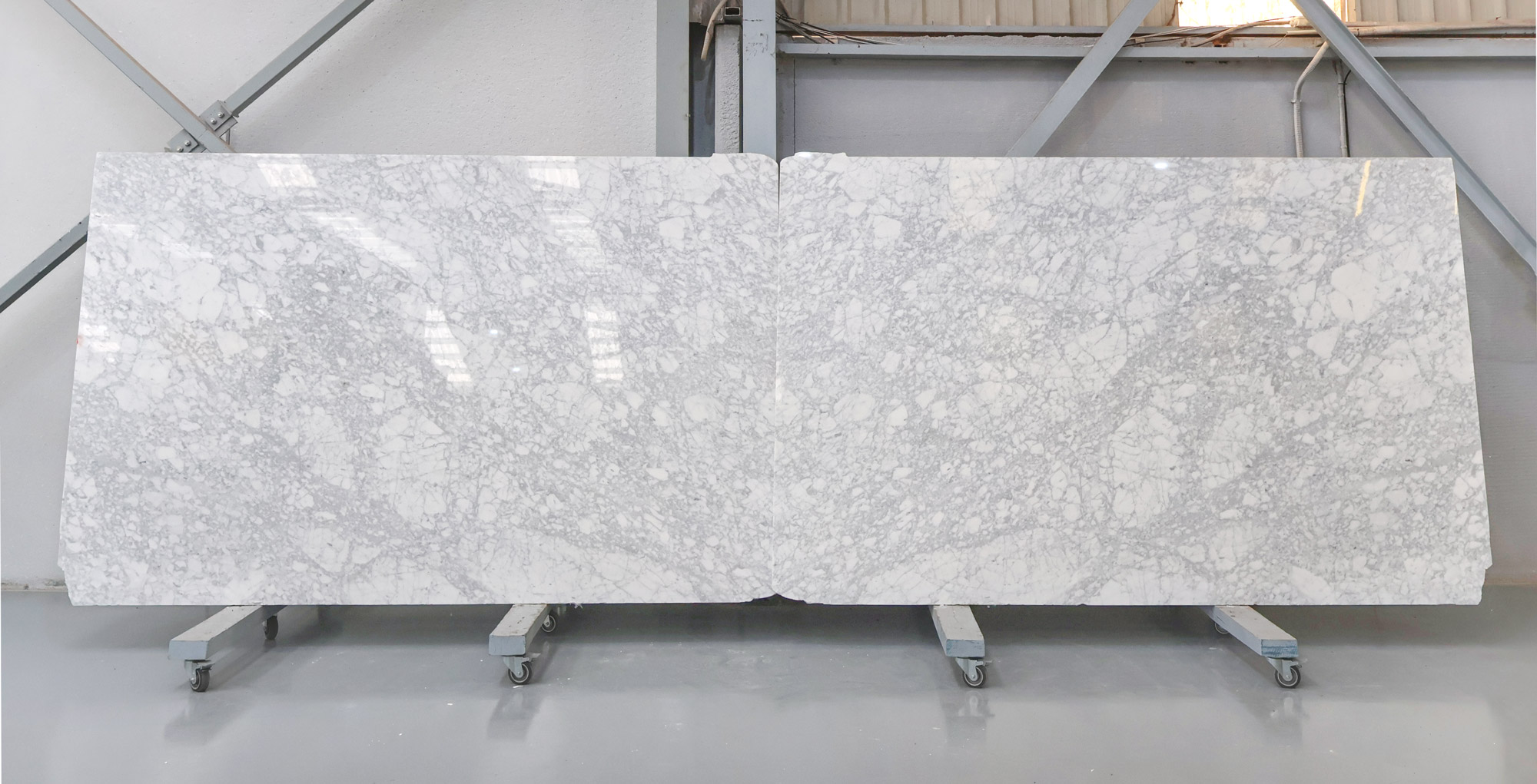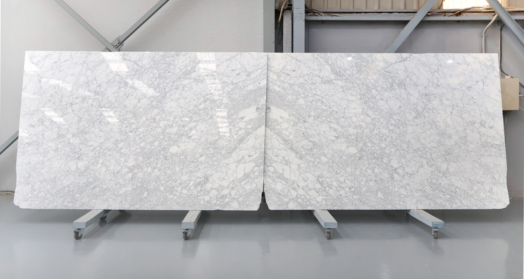 Mármol Bianco Carrara en tablas pulidas de 3 cm.
