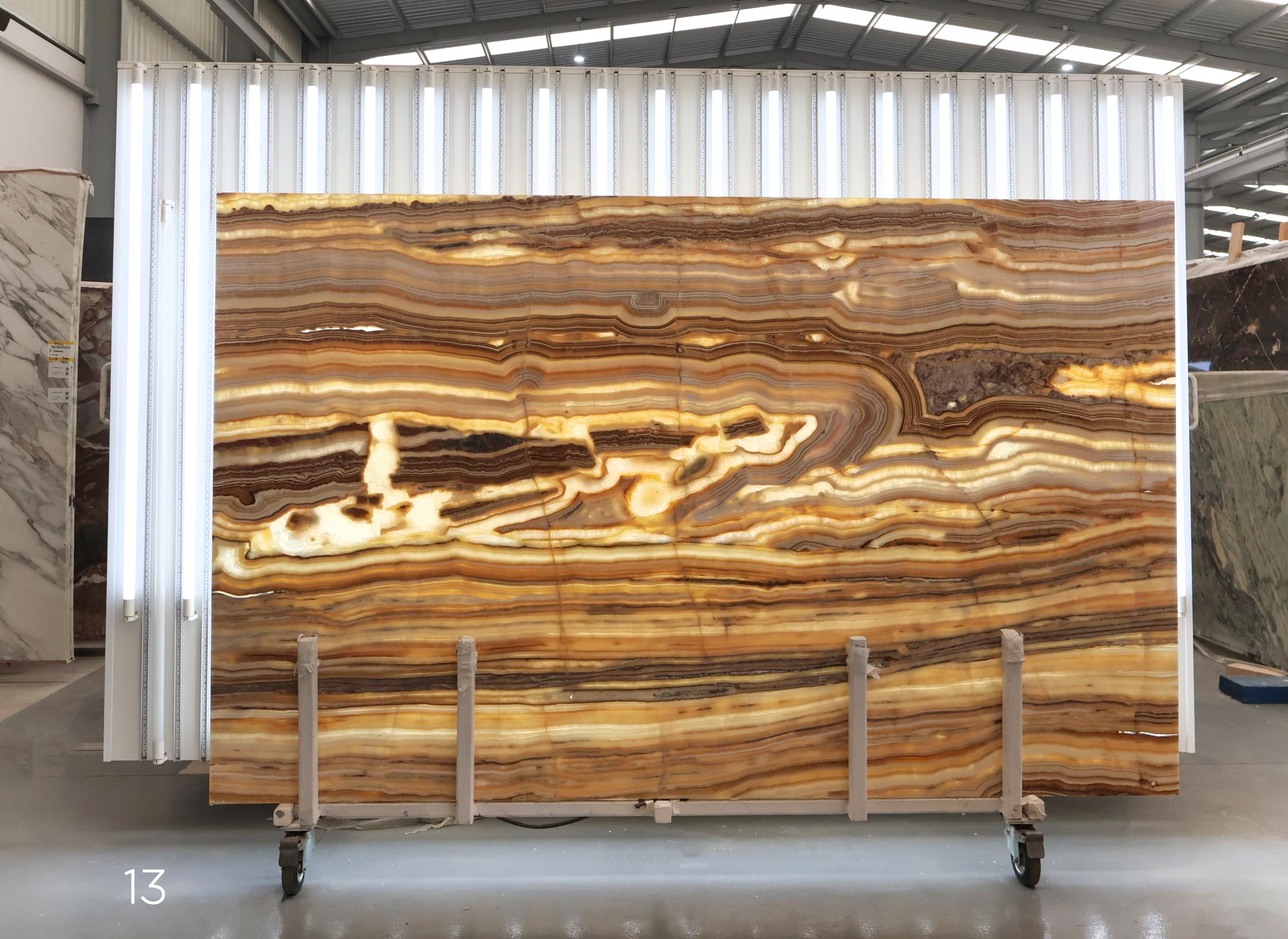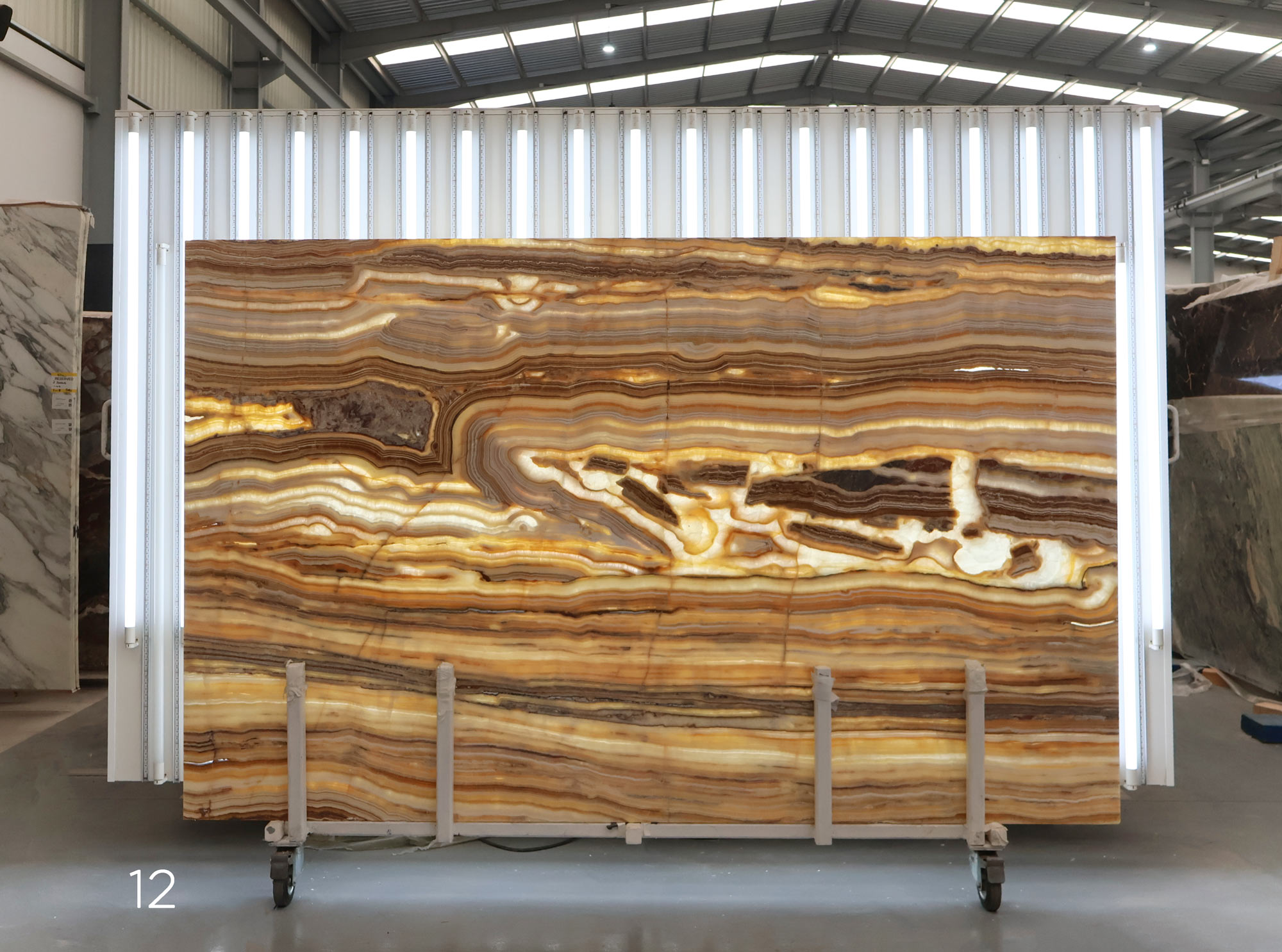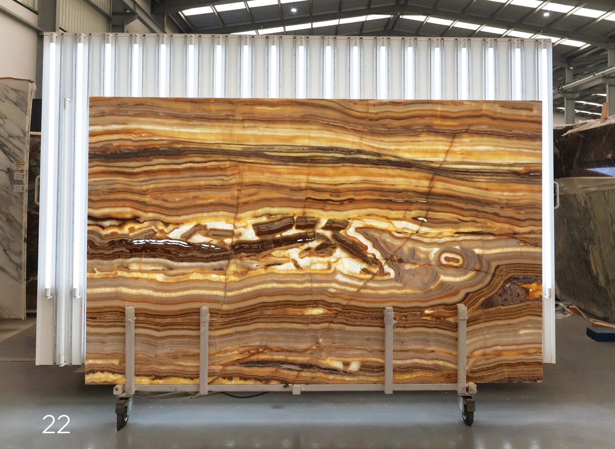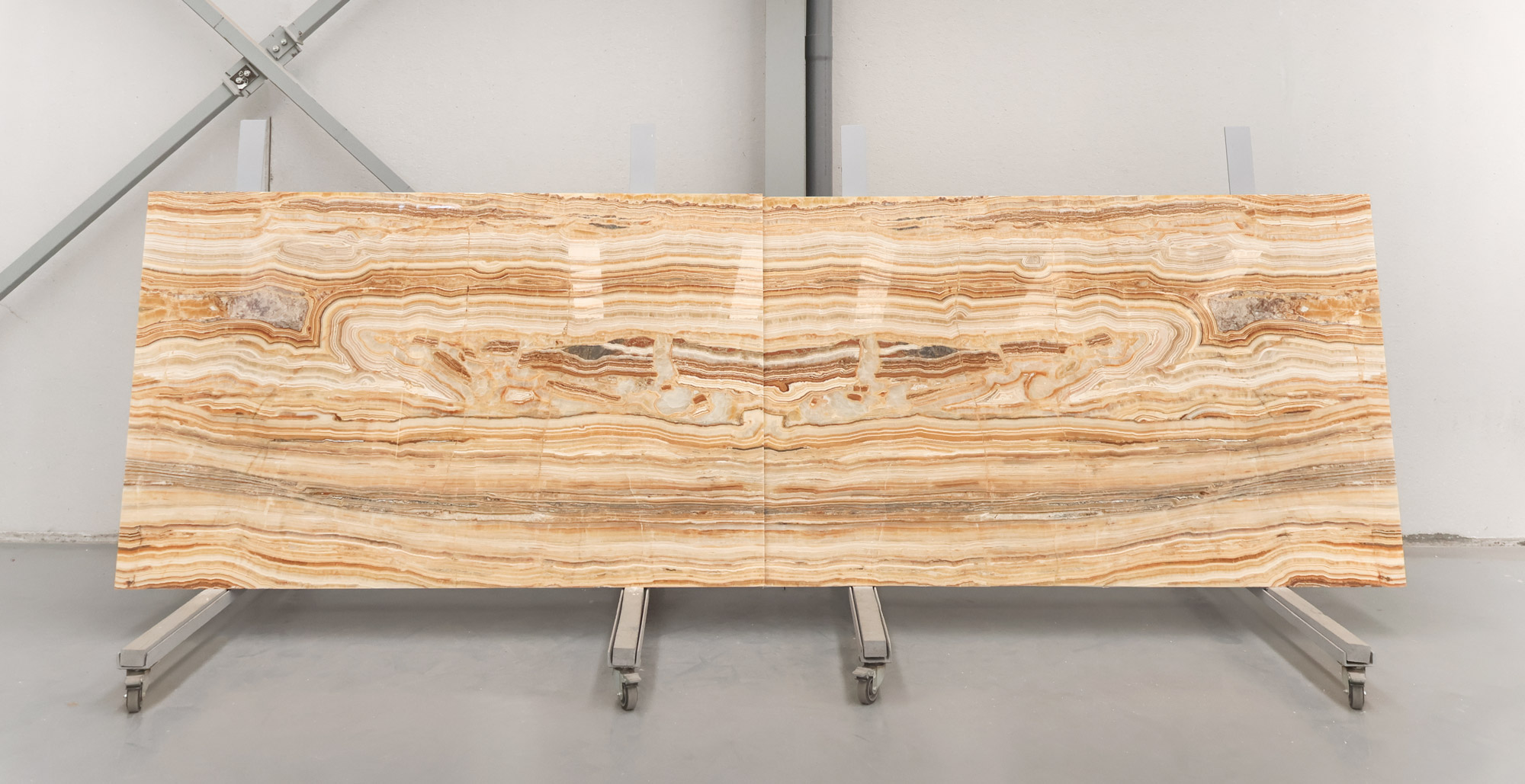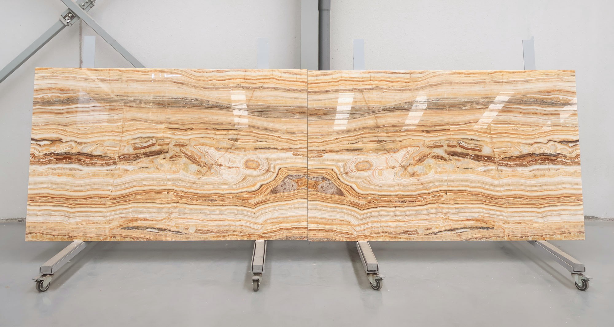 Sunset Onyx en tablas pulidas de 2 cm de grosor.