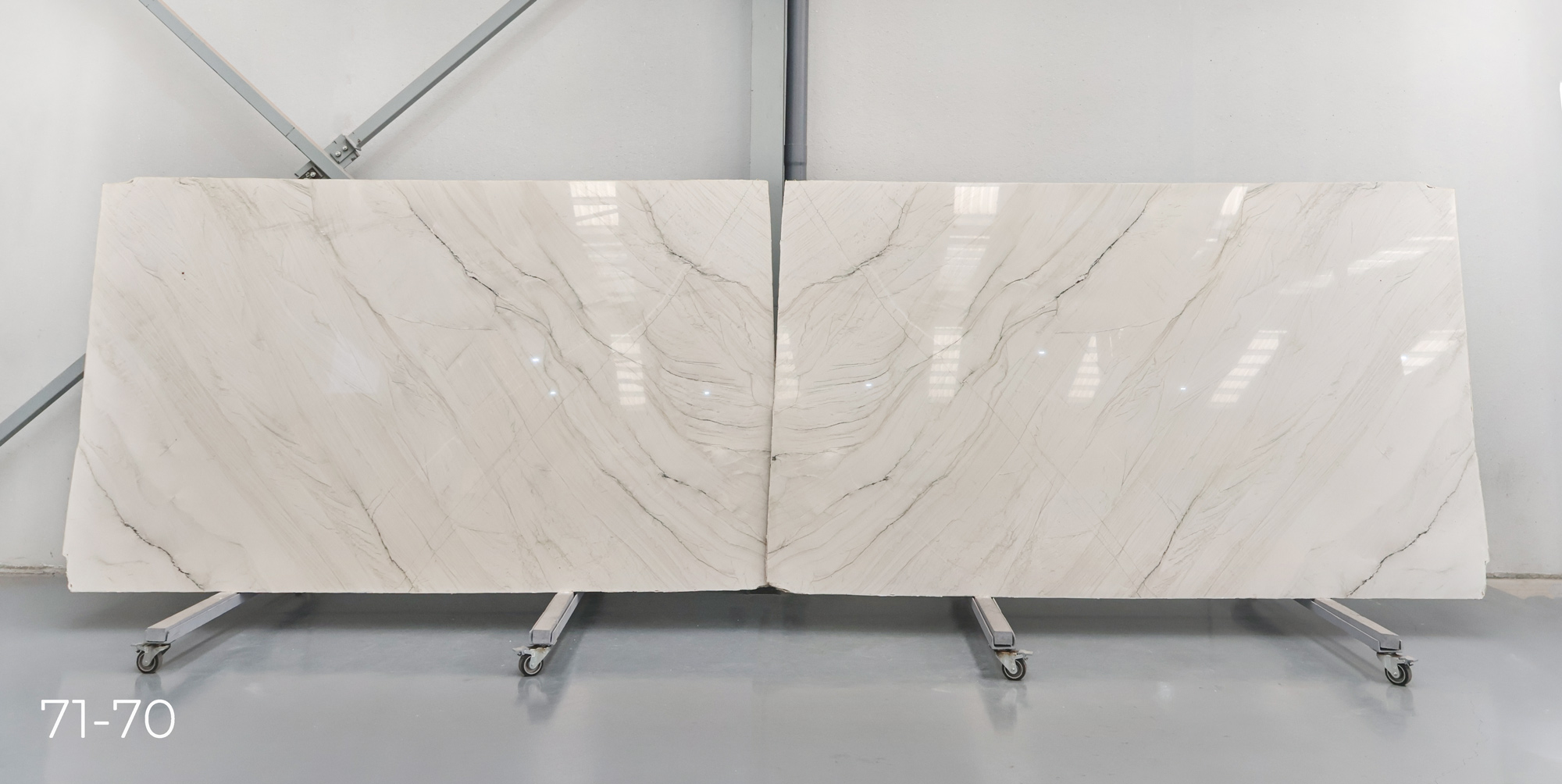 Cuarcita Mont Blanc en tablas pulidas de 2 cm de grosor.