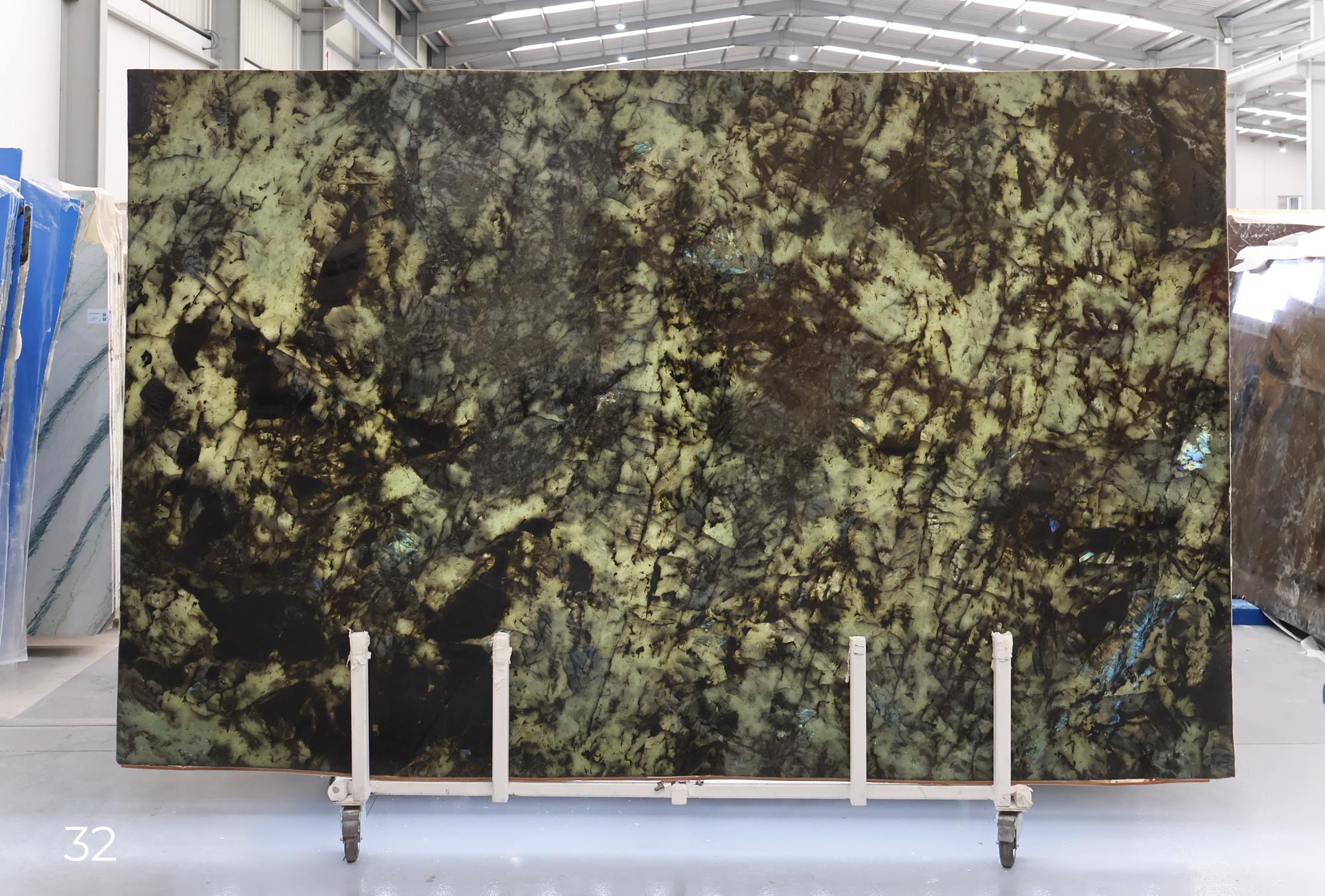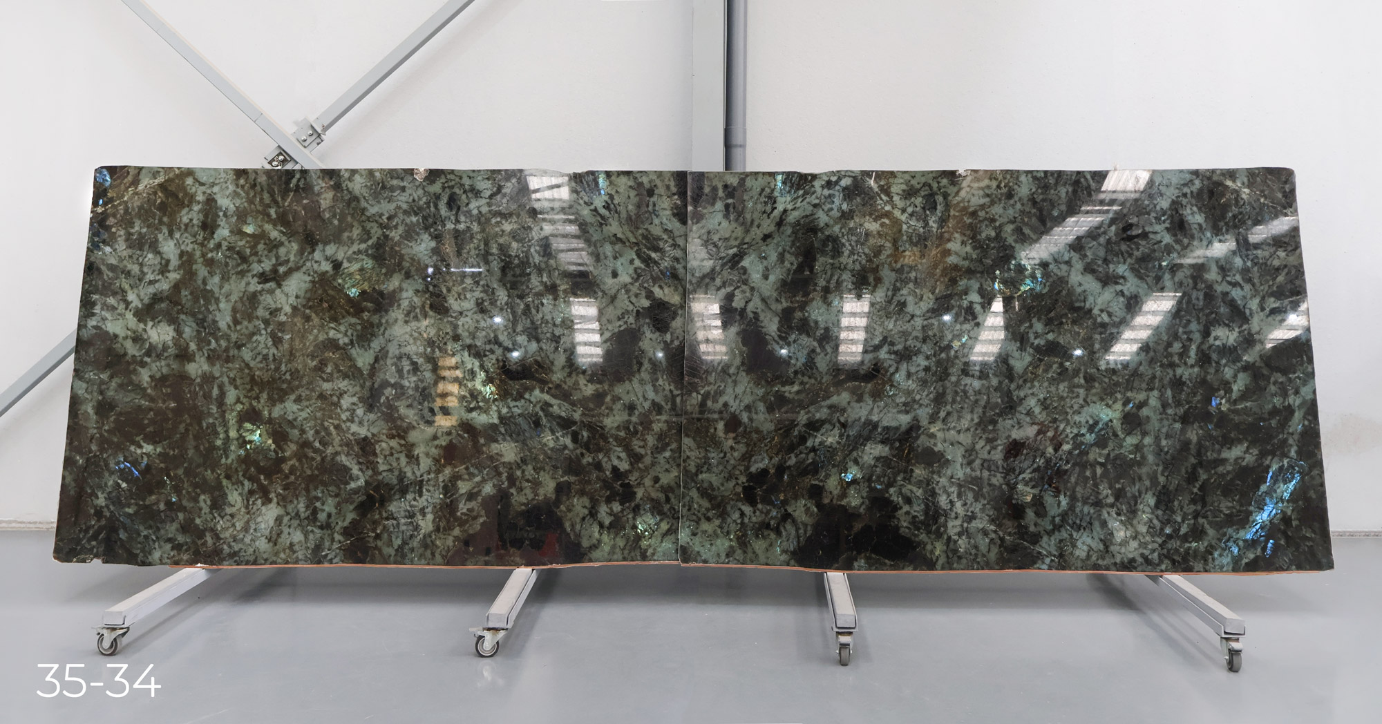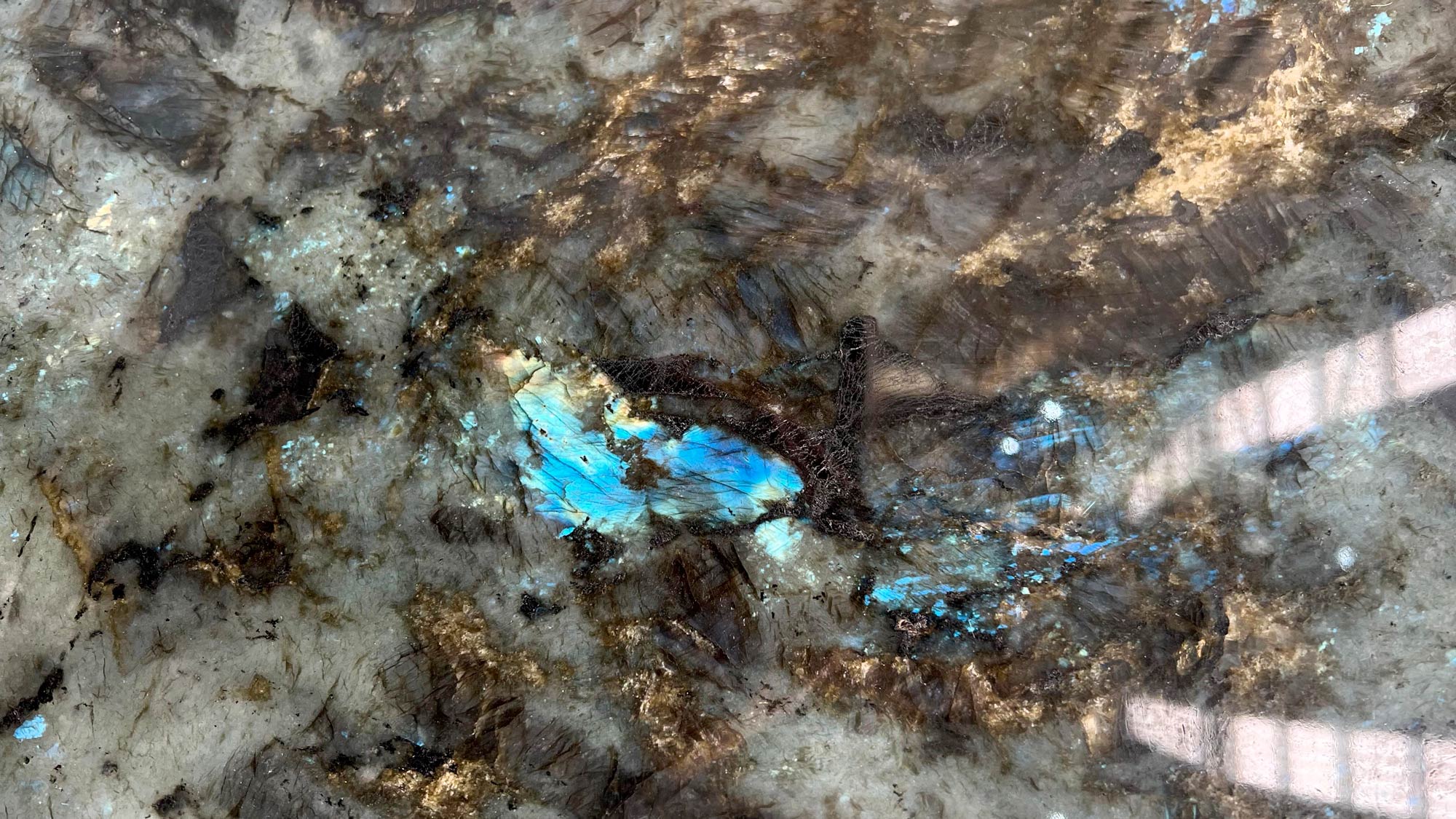 Lemurian Blue en tablas pulidas de 2 cm de grosor.