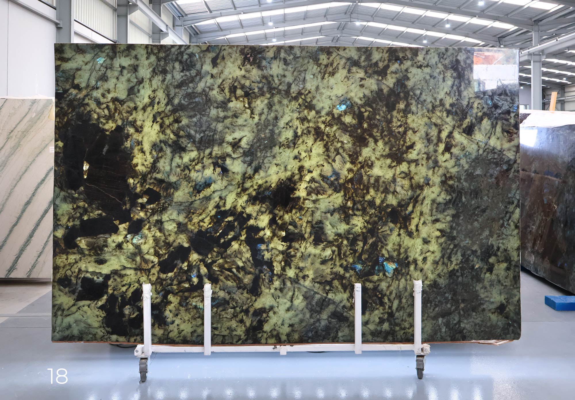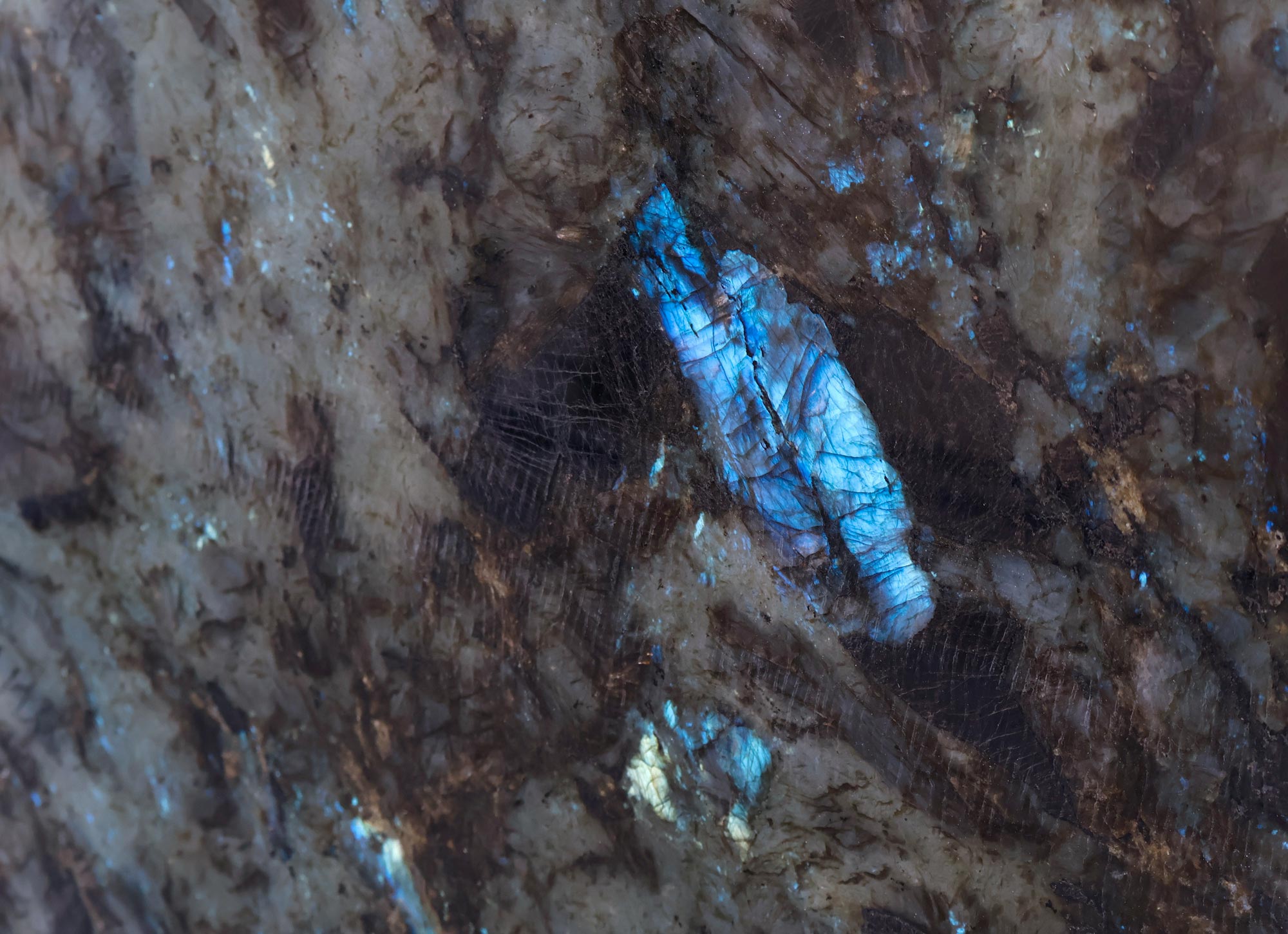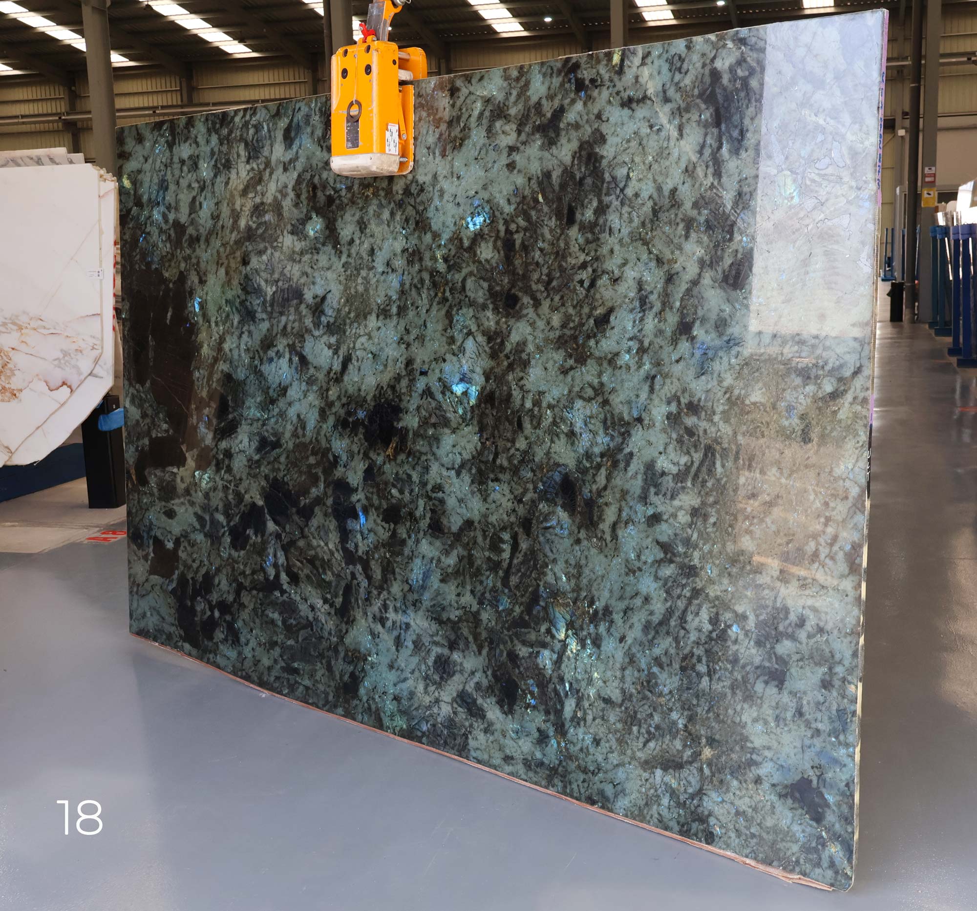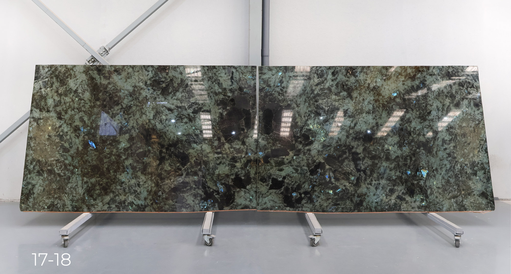 Lemurian Blue en tablas pulidas de 2 cm de grosor.