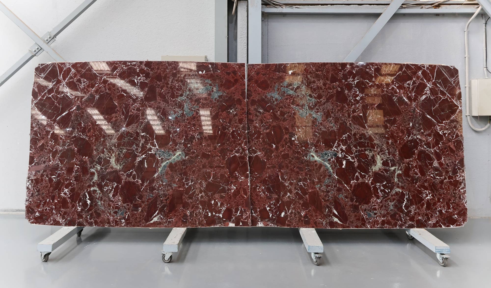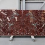 Mármol Rosso Levanto en tablas pulidas de 2 cm de grosor.