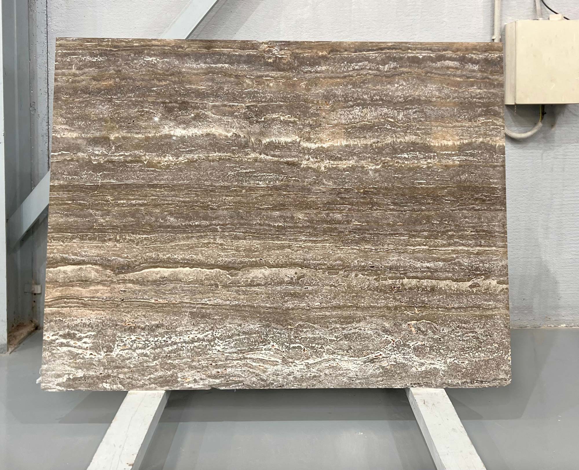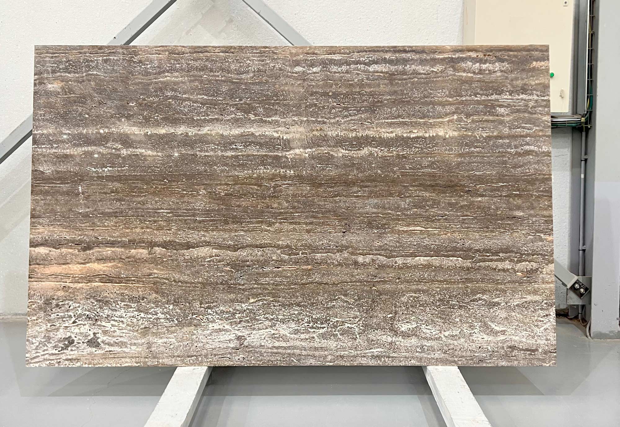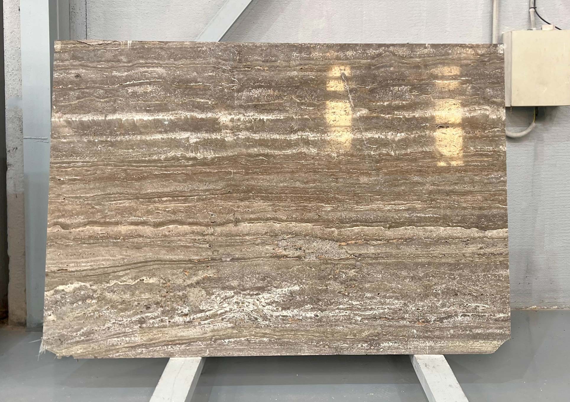 Mármol Travertino Silver en tablas pulidas de 2 cm de grosor.
