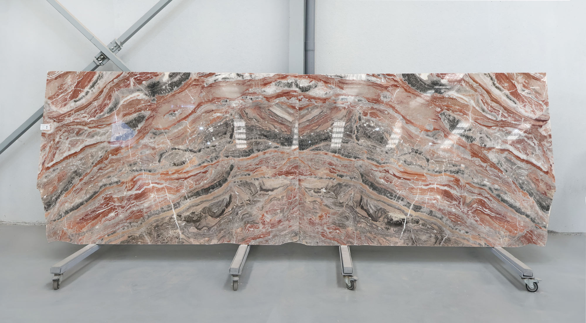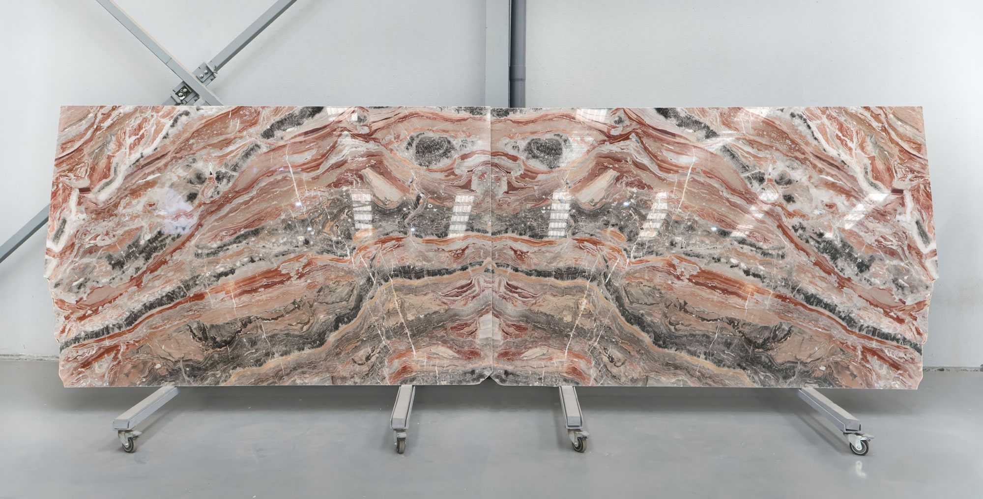 Marble Arabescato Orobico Rosso in 2 cm thick polished slabs.