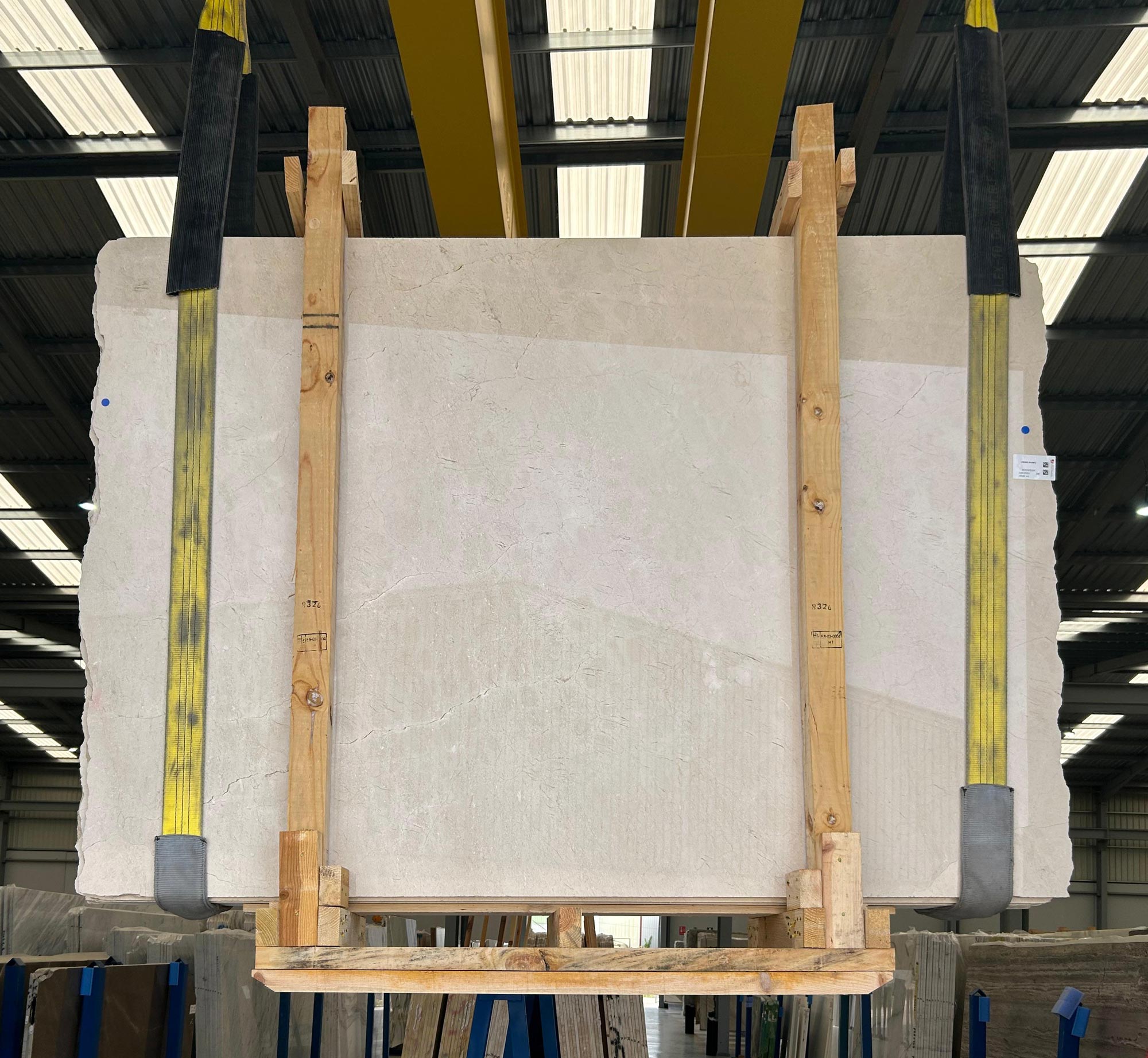Marble Crema Marfil in 2 cm thick polished slabs.