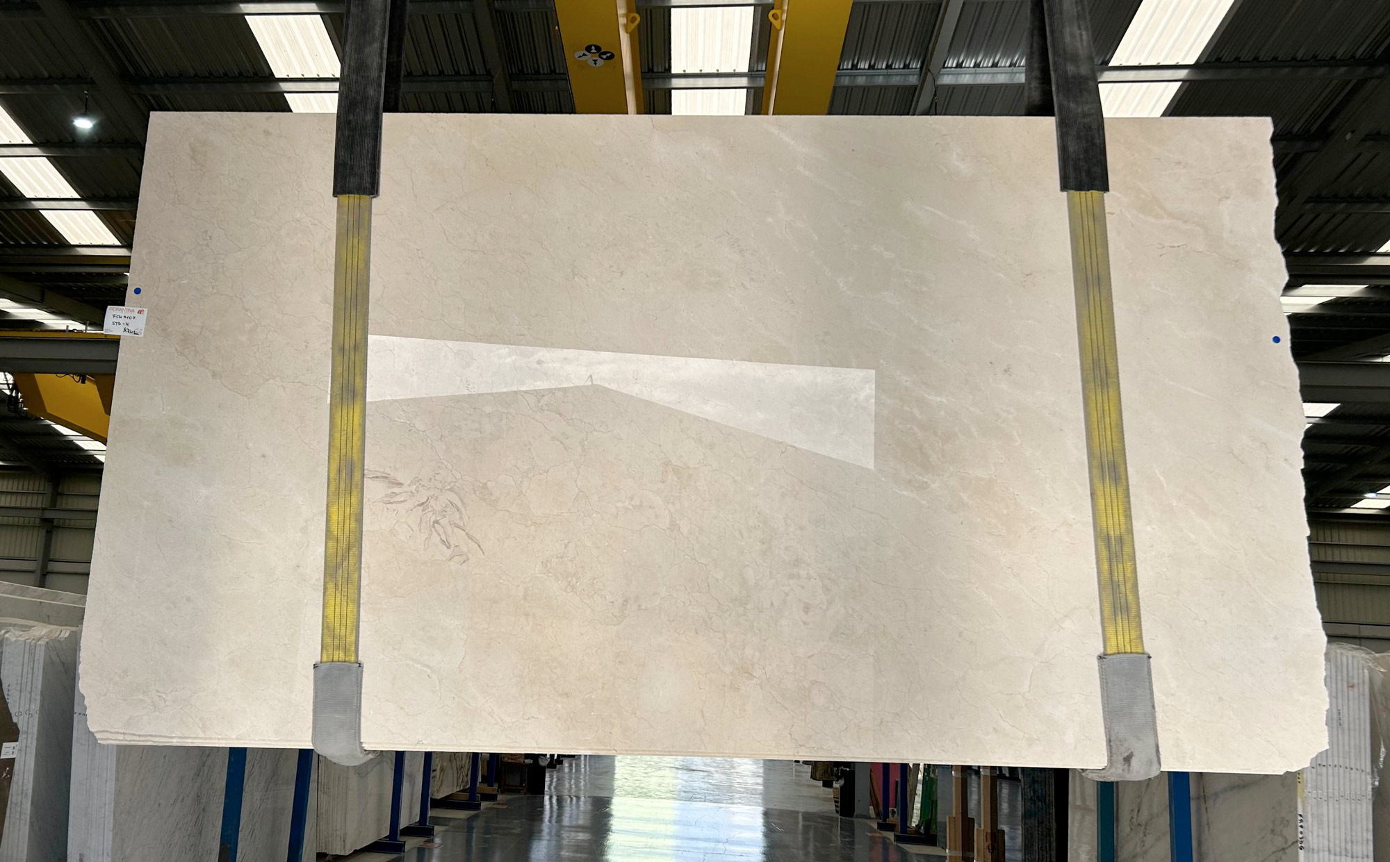 Marble Crema Marfil in 2 cm thick polished slabs.
