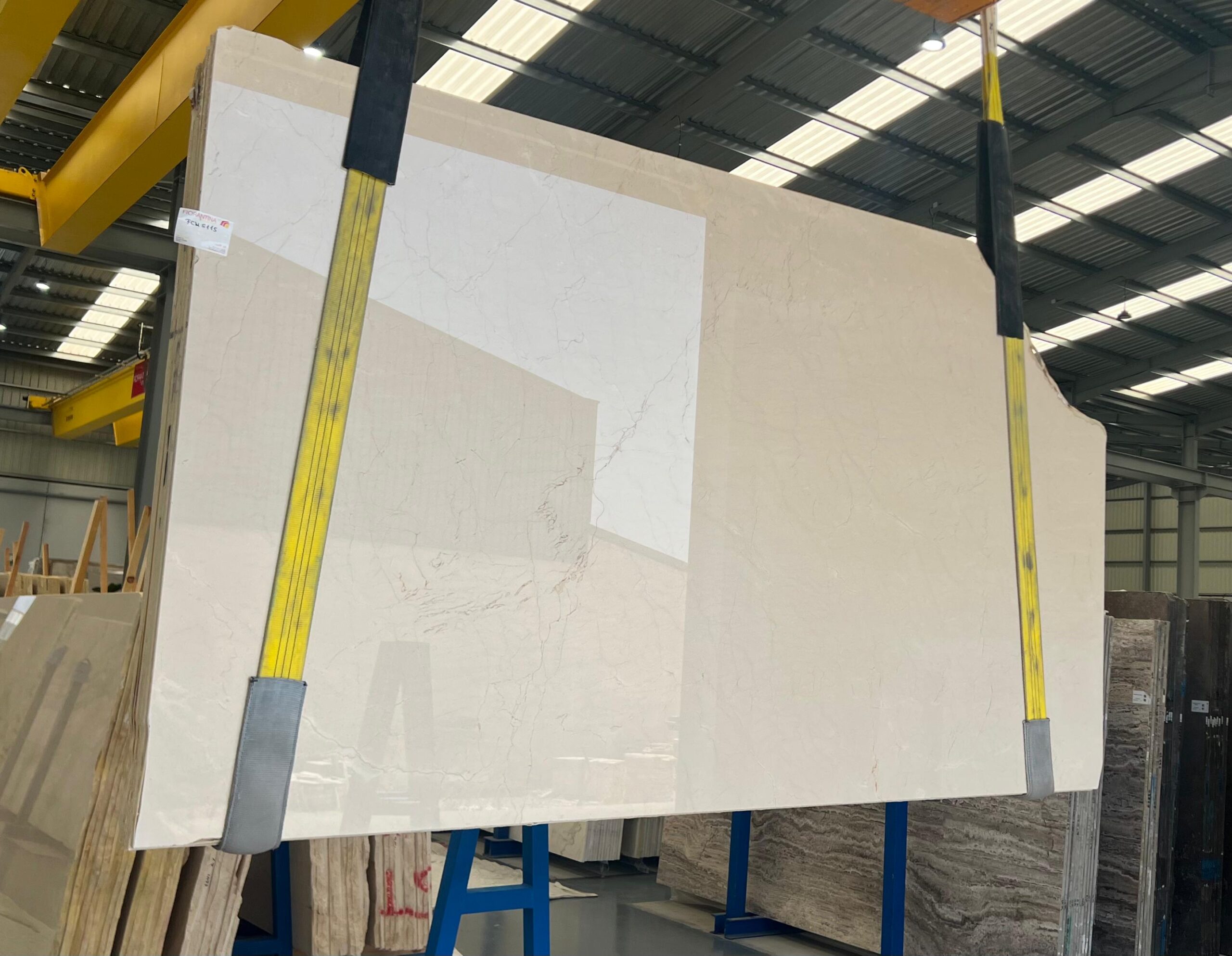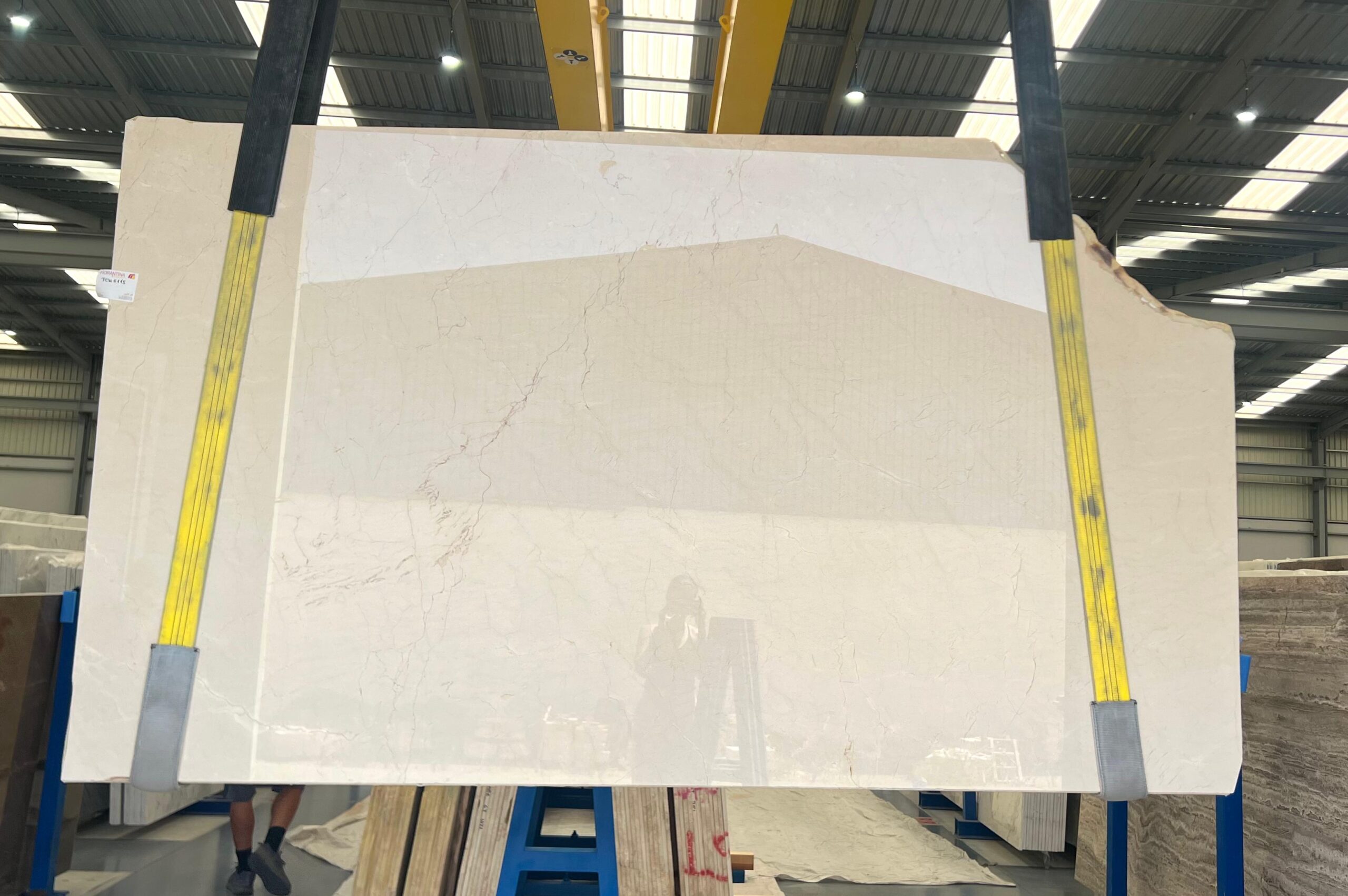 Marble Crema Marfil in 2 cm thick polished slabs.