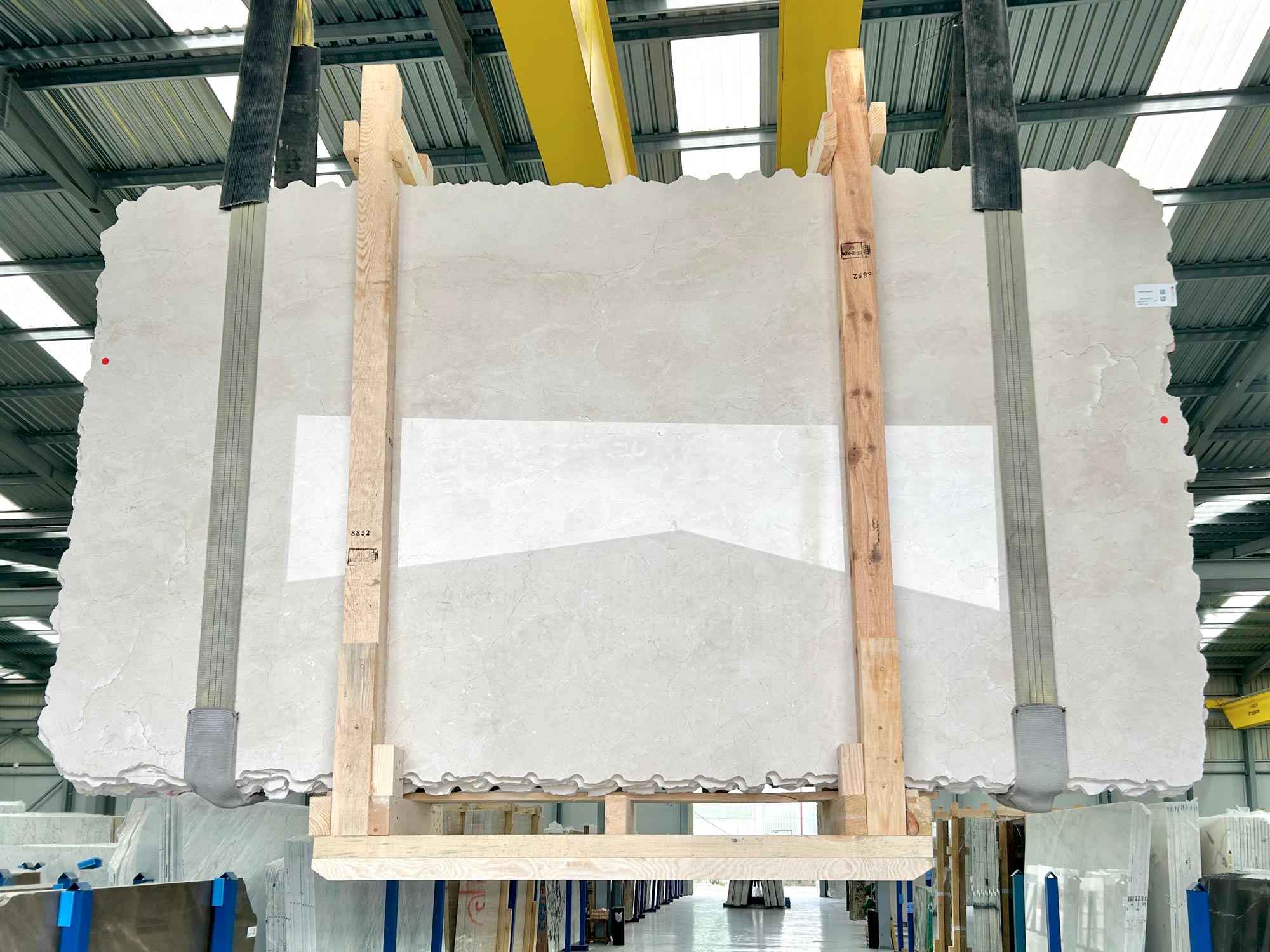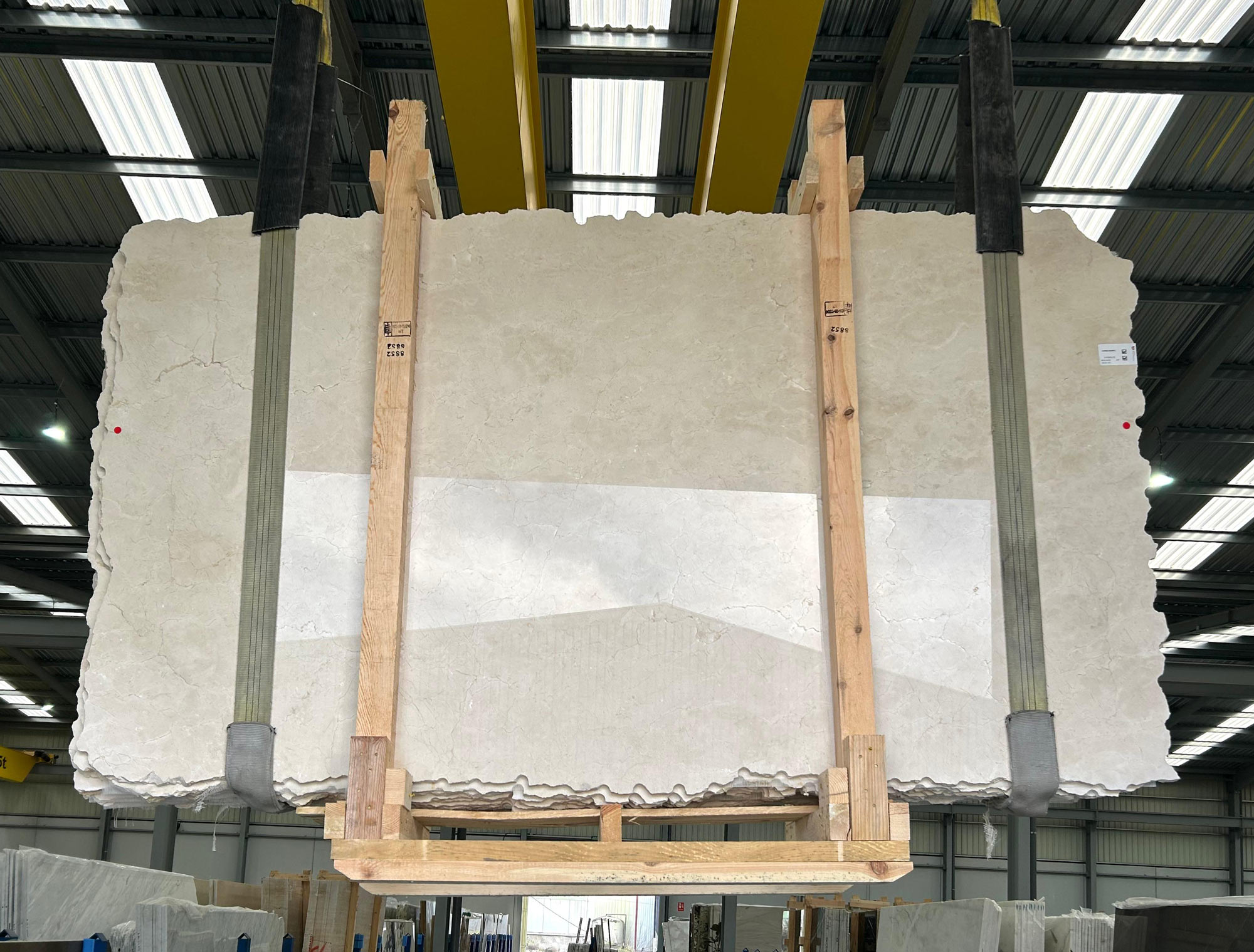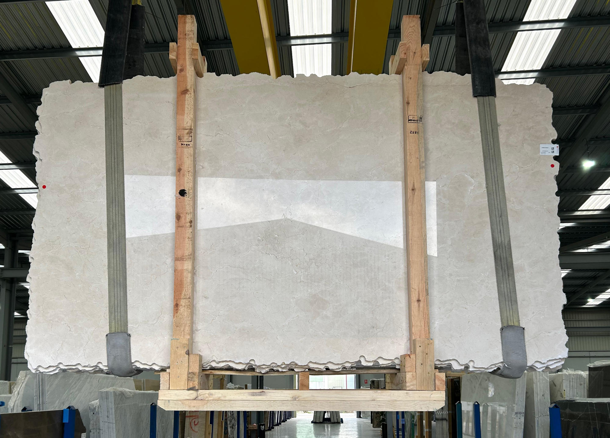 Marble Crema Marfil in 2 cm thick polished slabs.