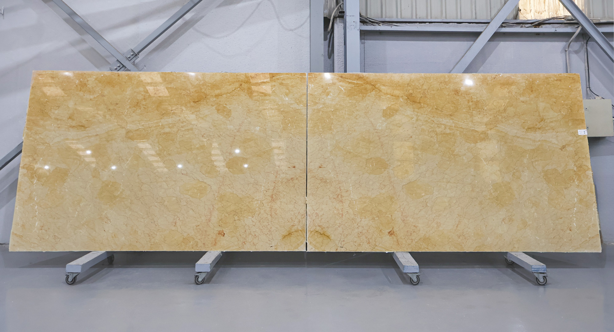 Marble Crema Valencia in 2 cm thick polished slabs.