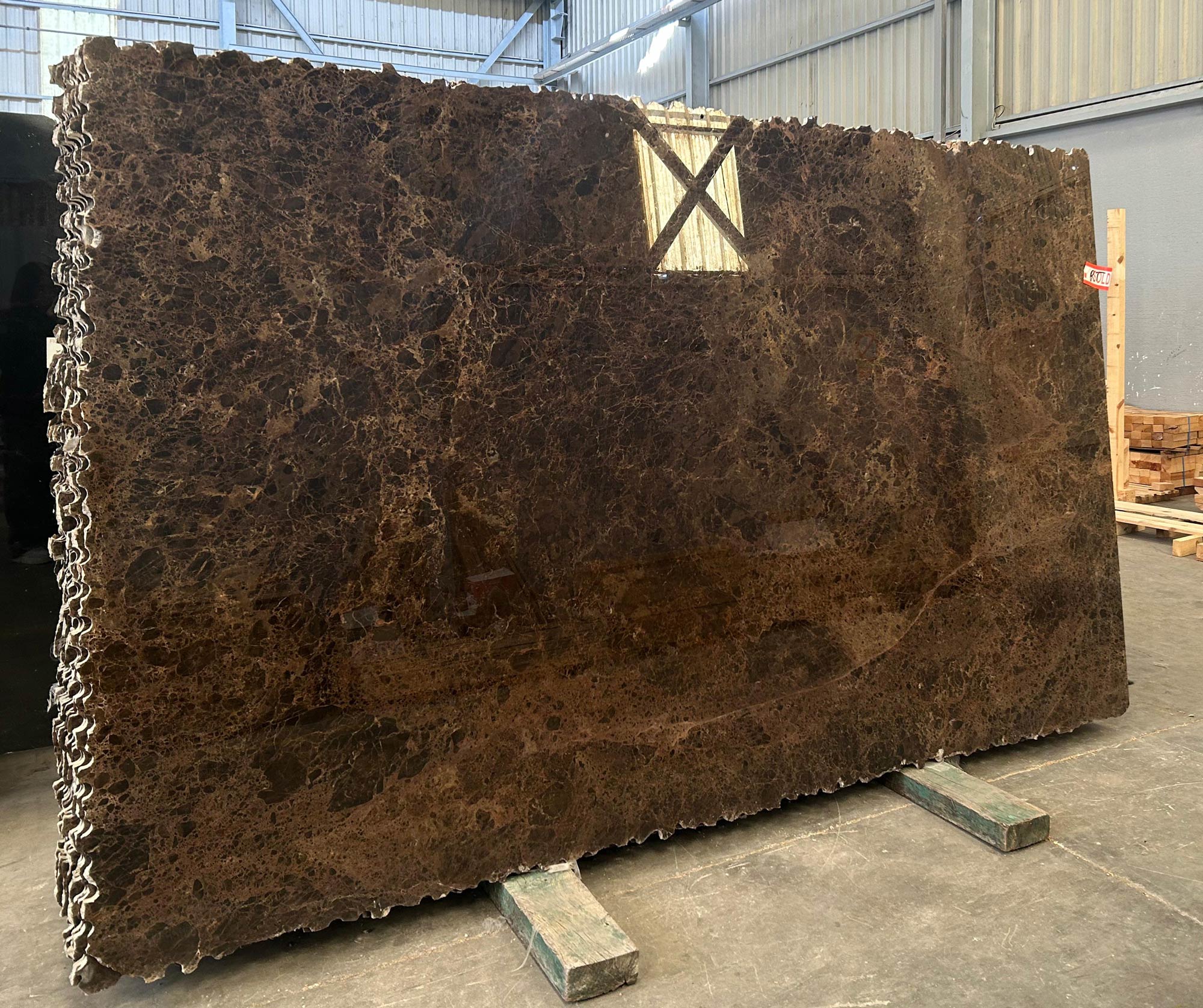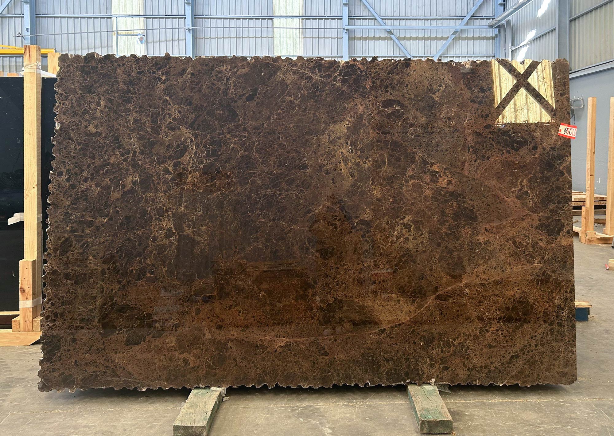 Marble Dark Emperador in 2 cm thick polished slabs.