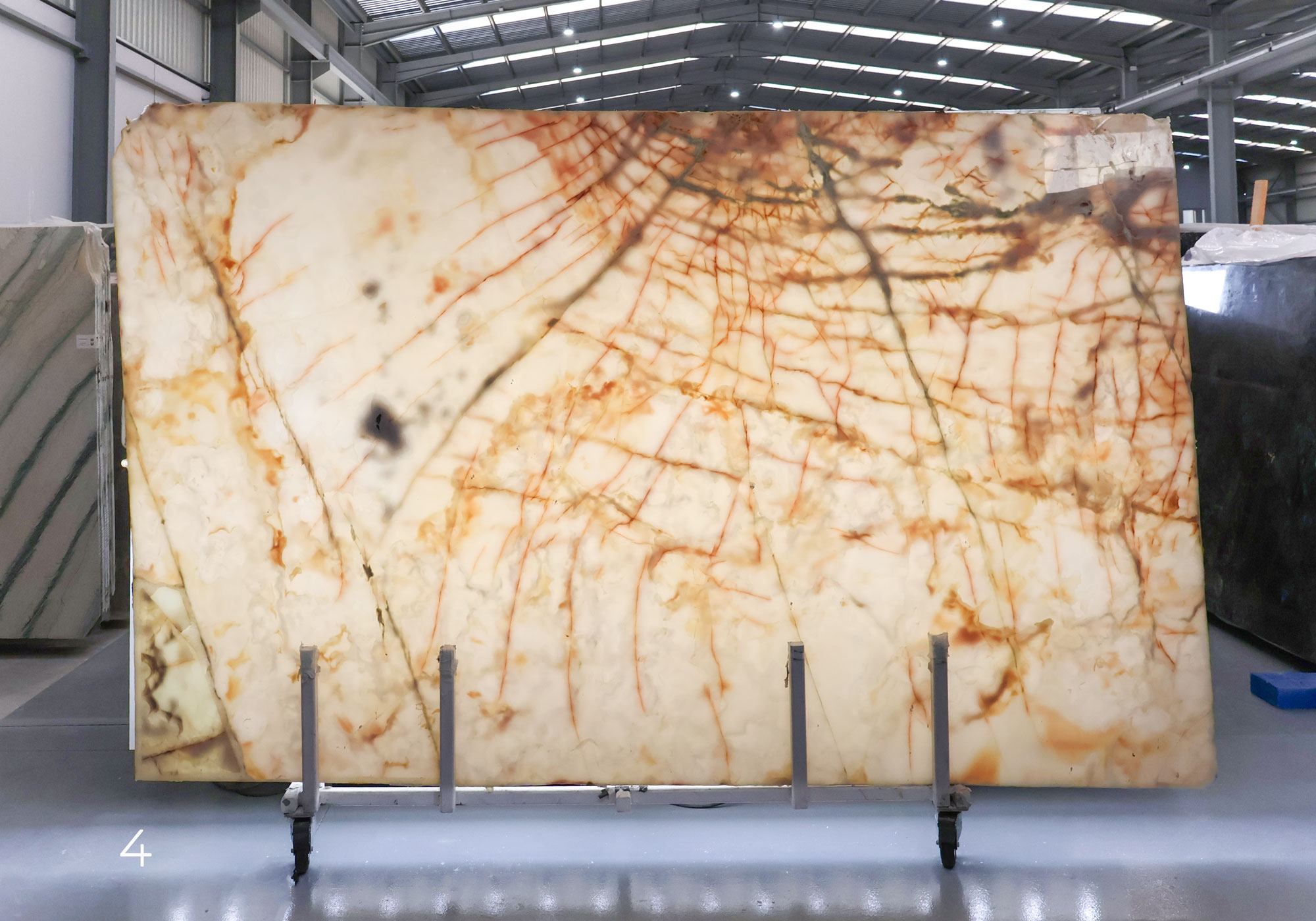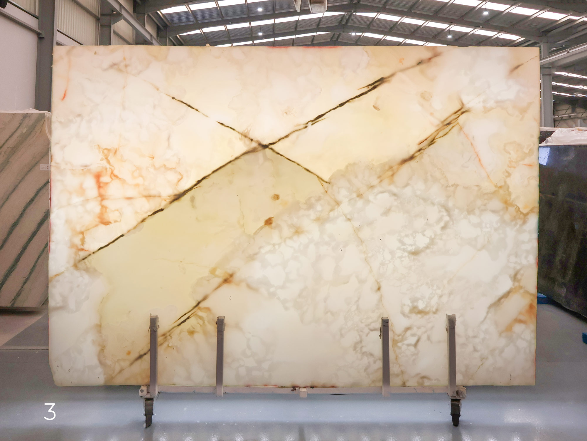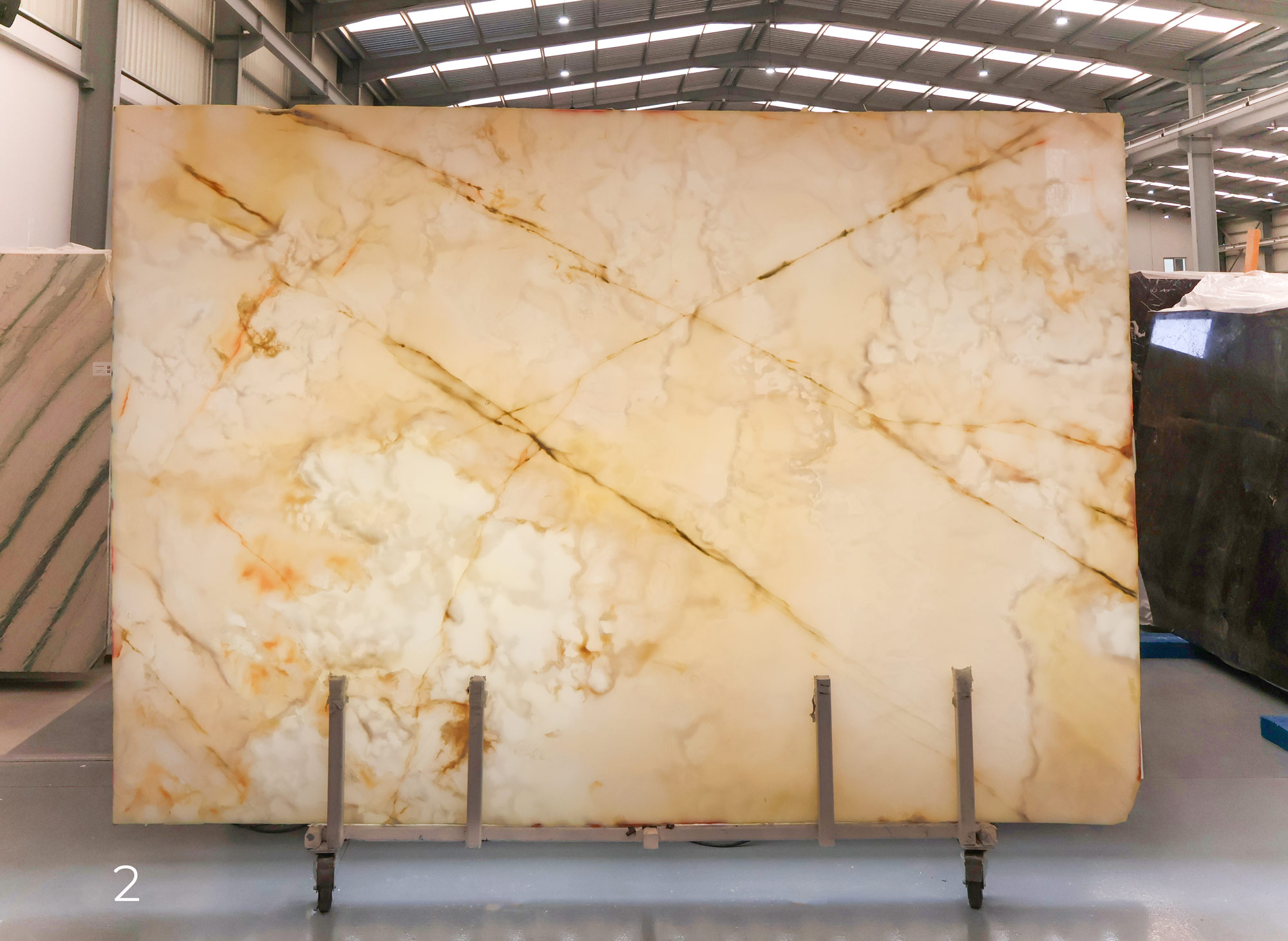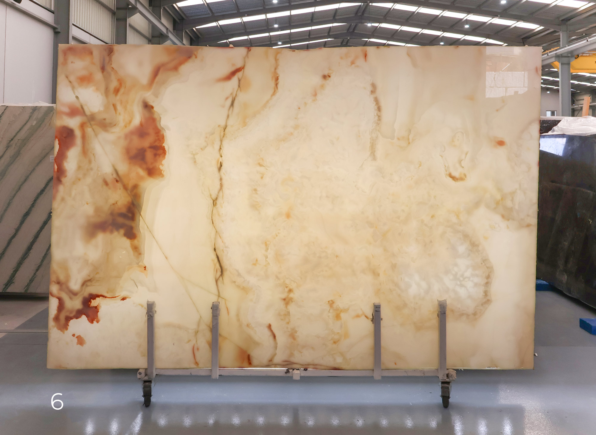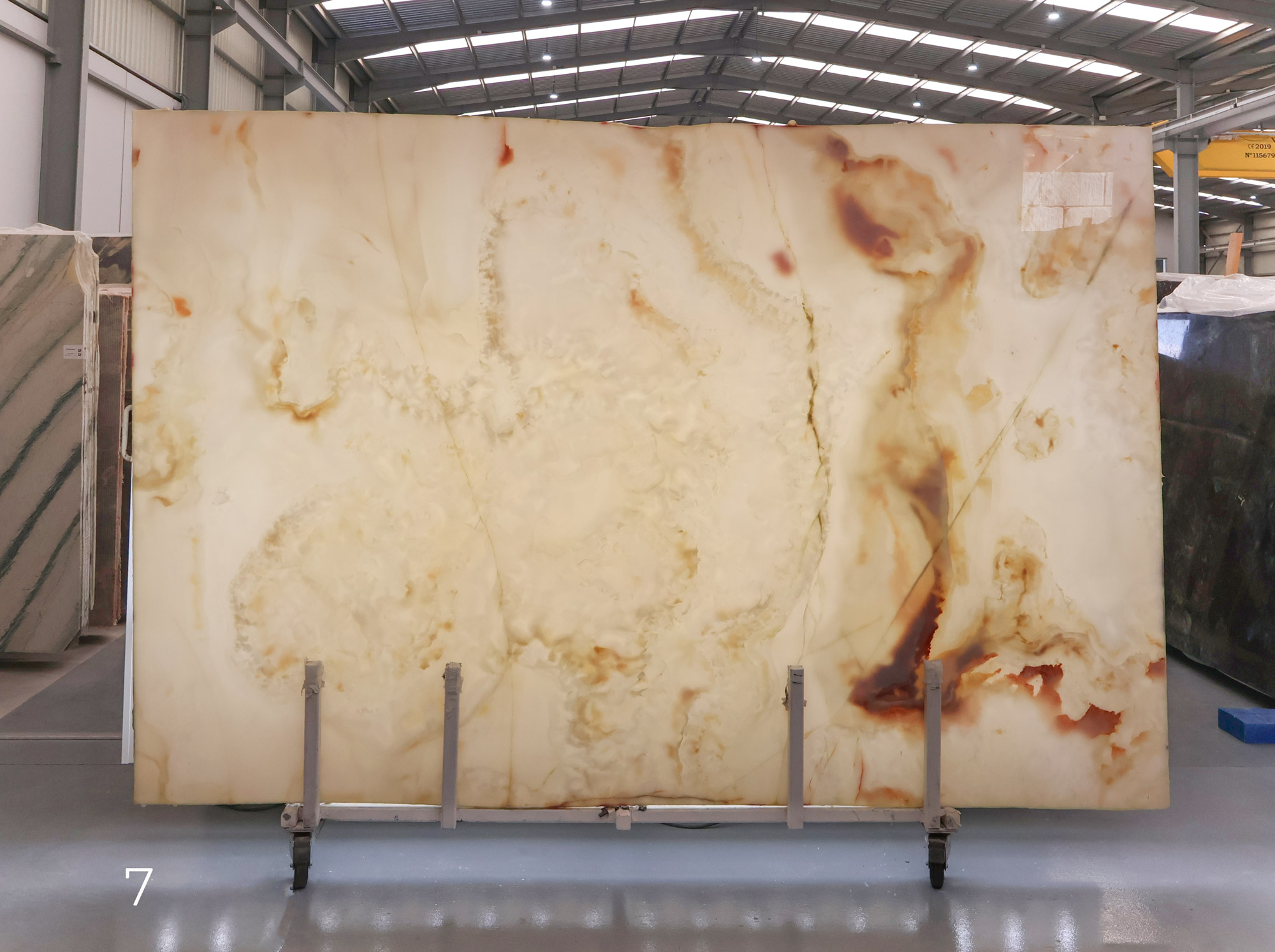 White Onyx in slabs 2 cm and polished. 7 slabs available.