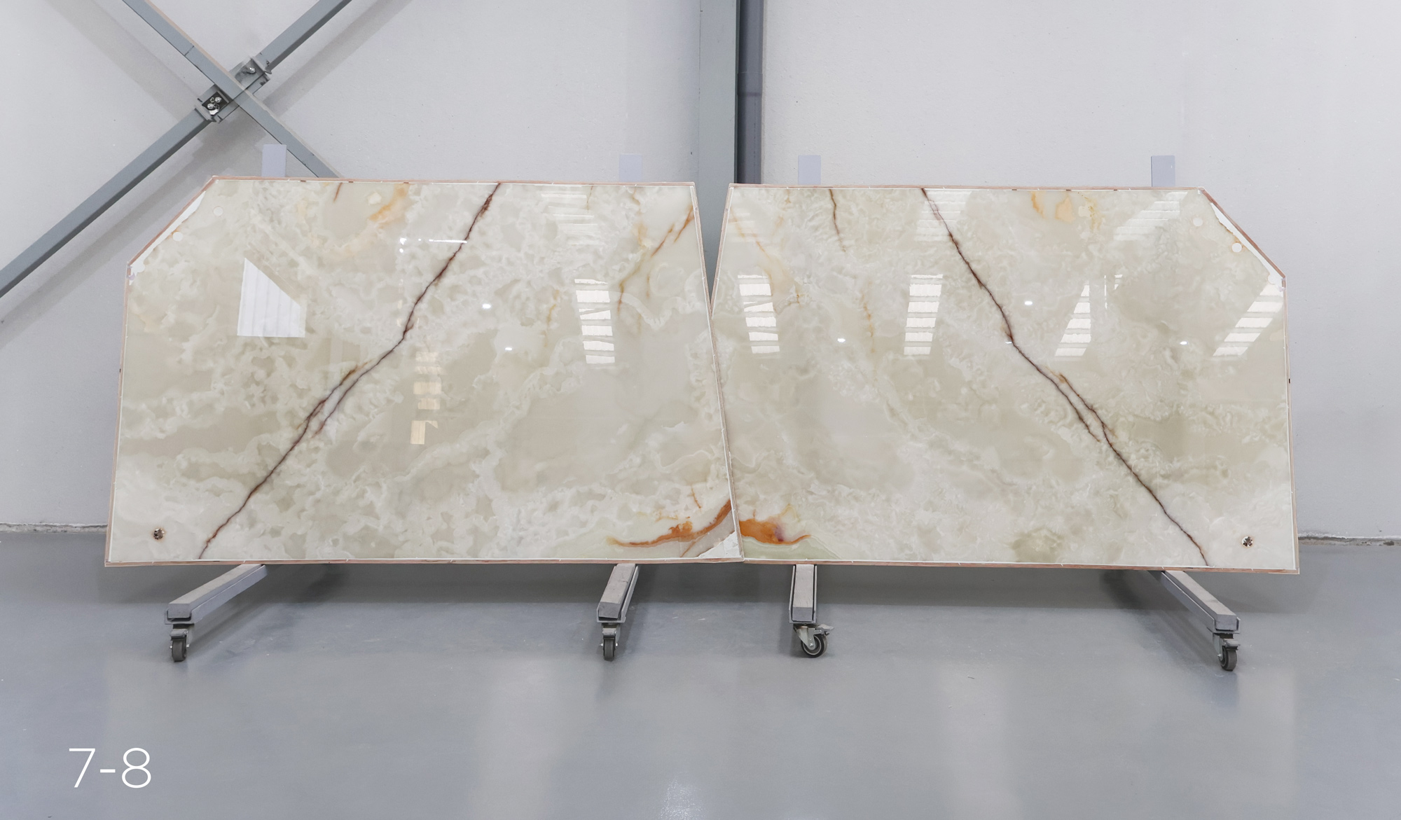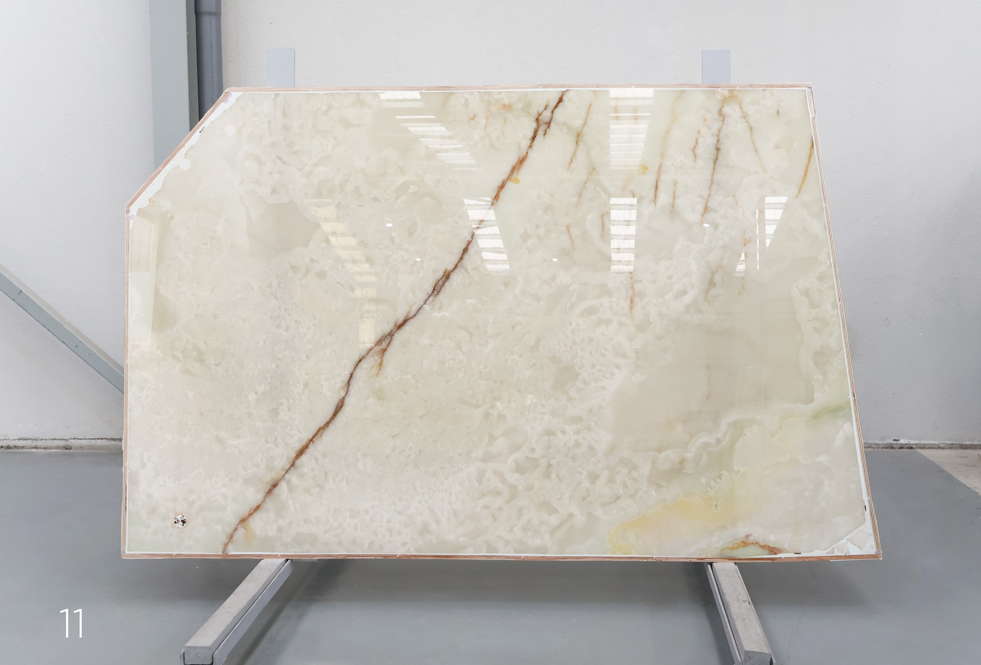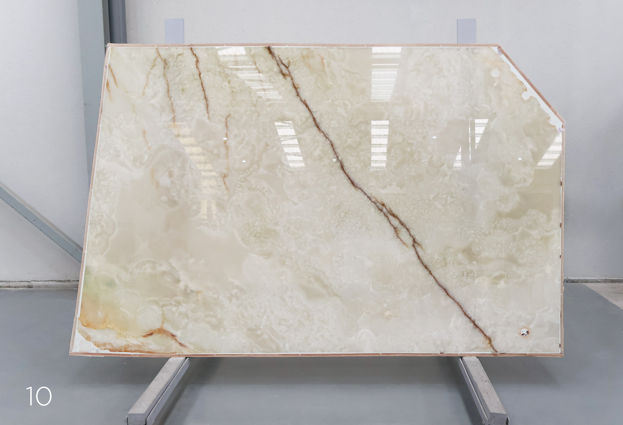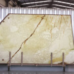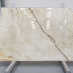 White Onyx in 2 cm slabs and polished.