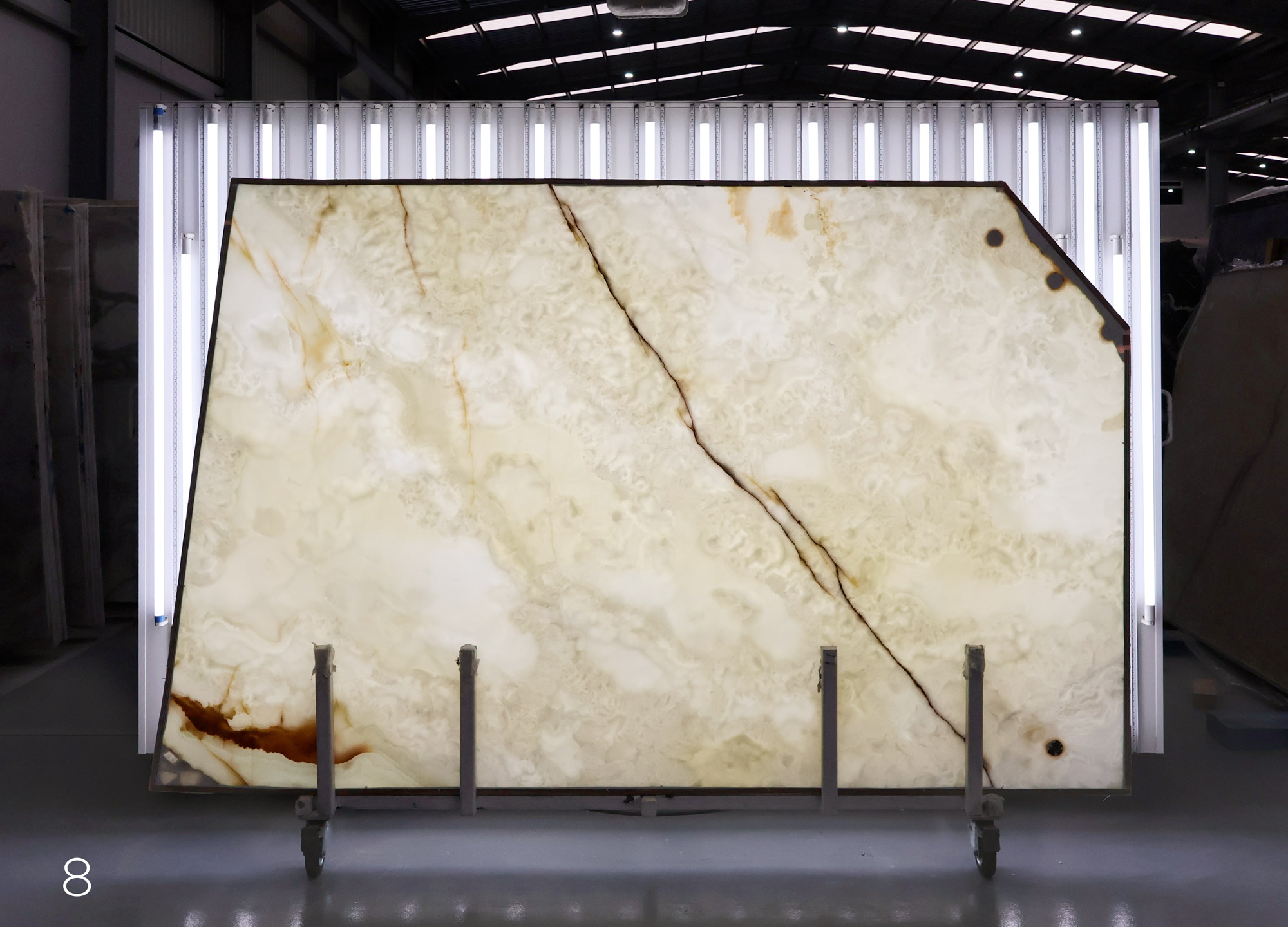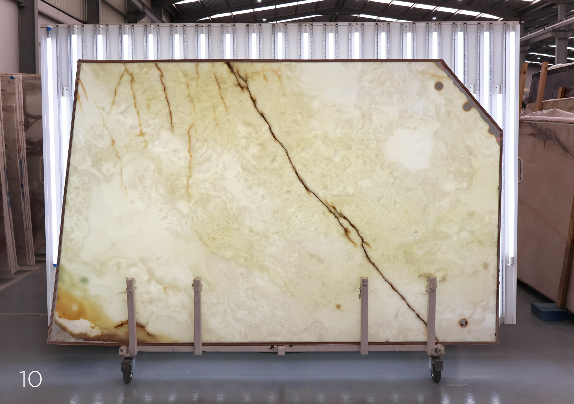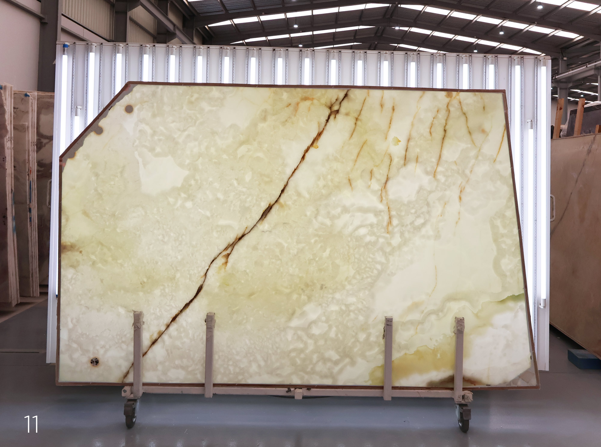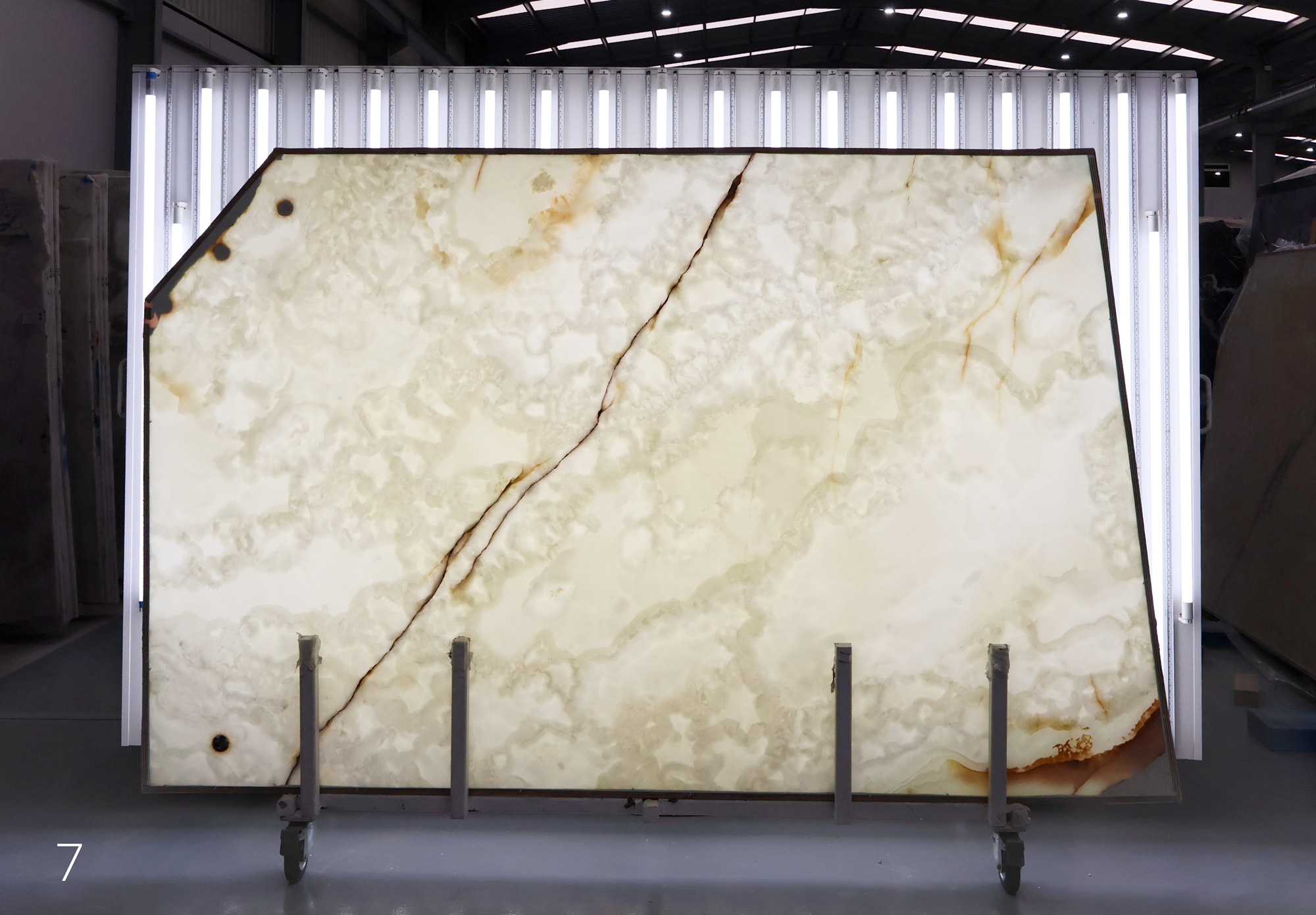 White Onyx in 2 cm slabs and polished.