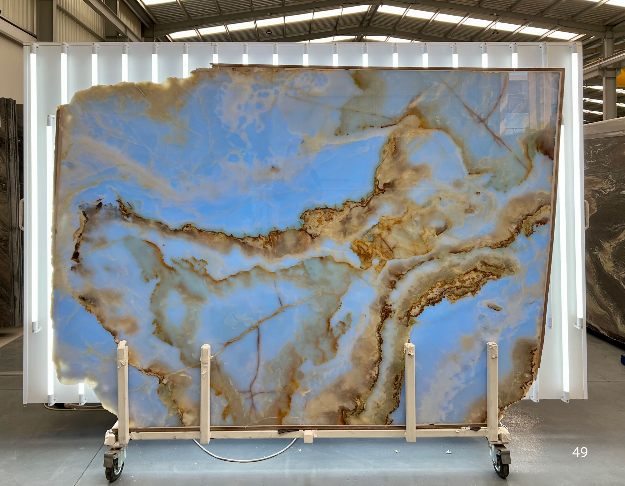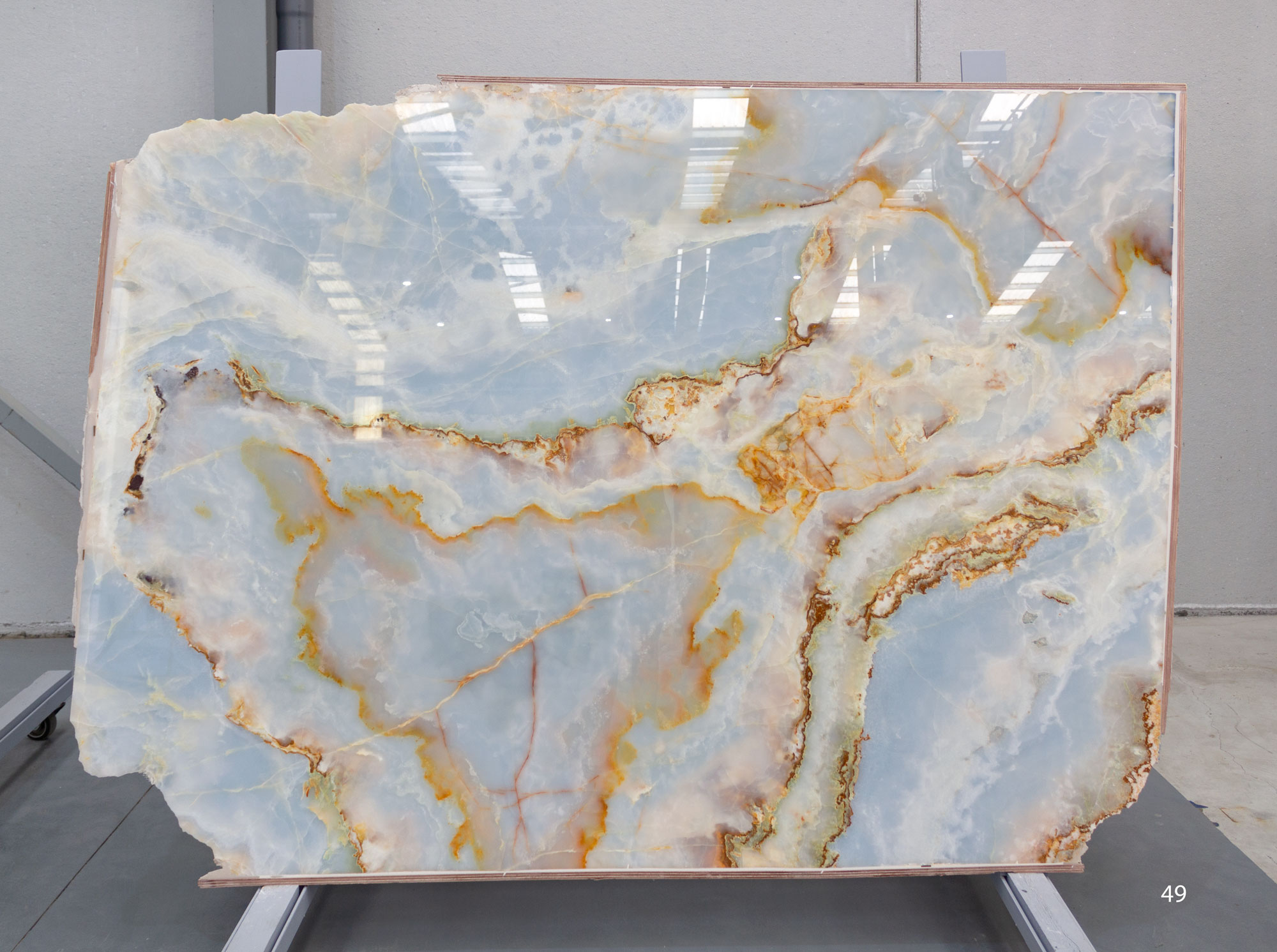 Blue Sky Onyx in slabs 2 cm and polished. 8 slabs available.