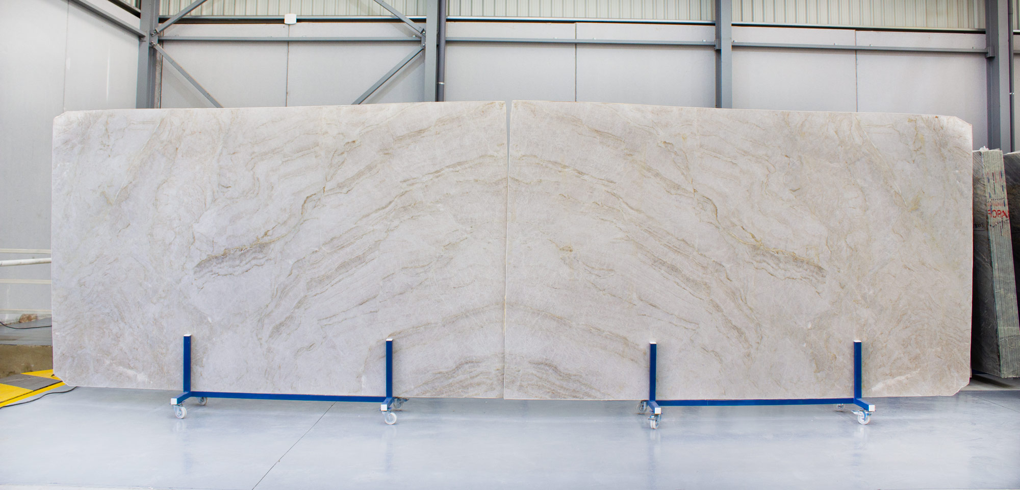 Beautiful Taj Mahal Quartzite is a stunning natural stone with a creamy white background and delicate gray and gold veins. Its colors are reminiscent of the beautiful Taj Mahal monument.