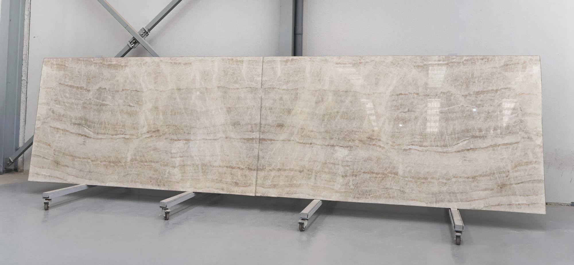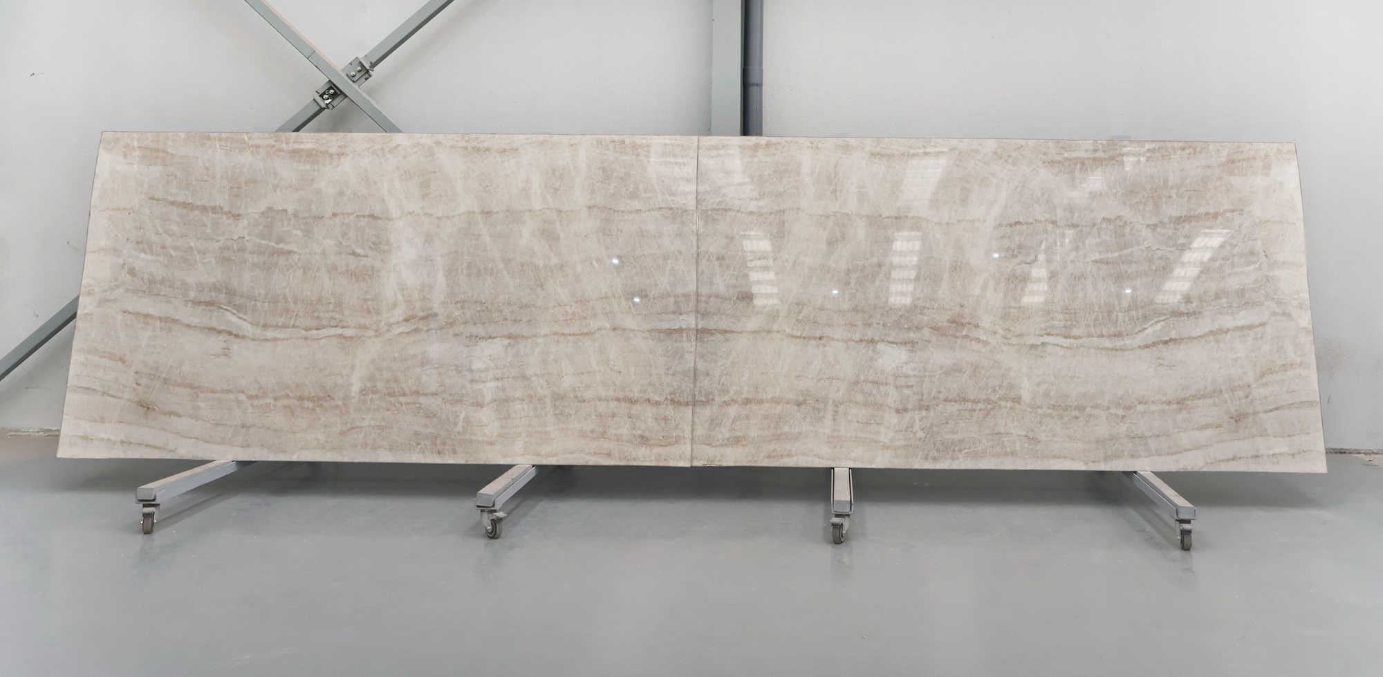 Quartzite Taj Mahal in 2 cm thick polished slabs. 8 slabs available.
