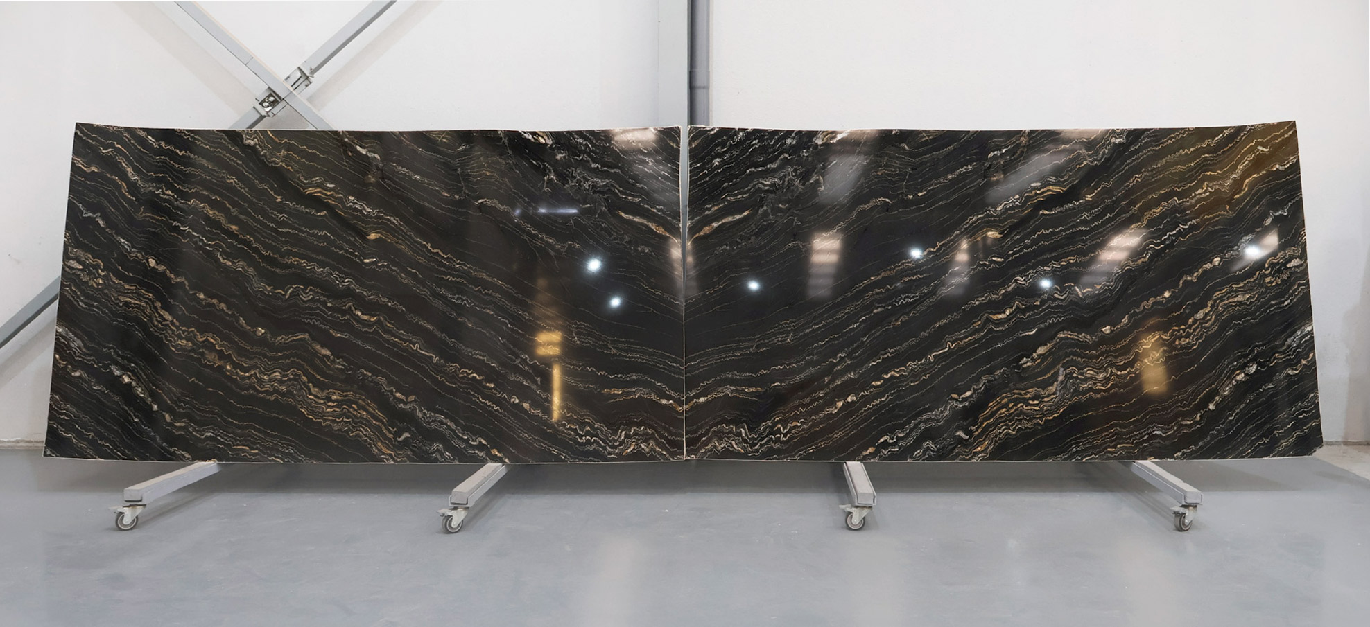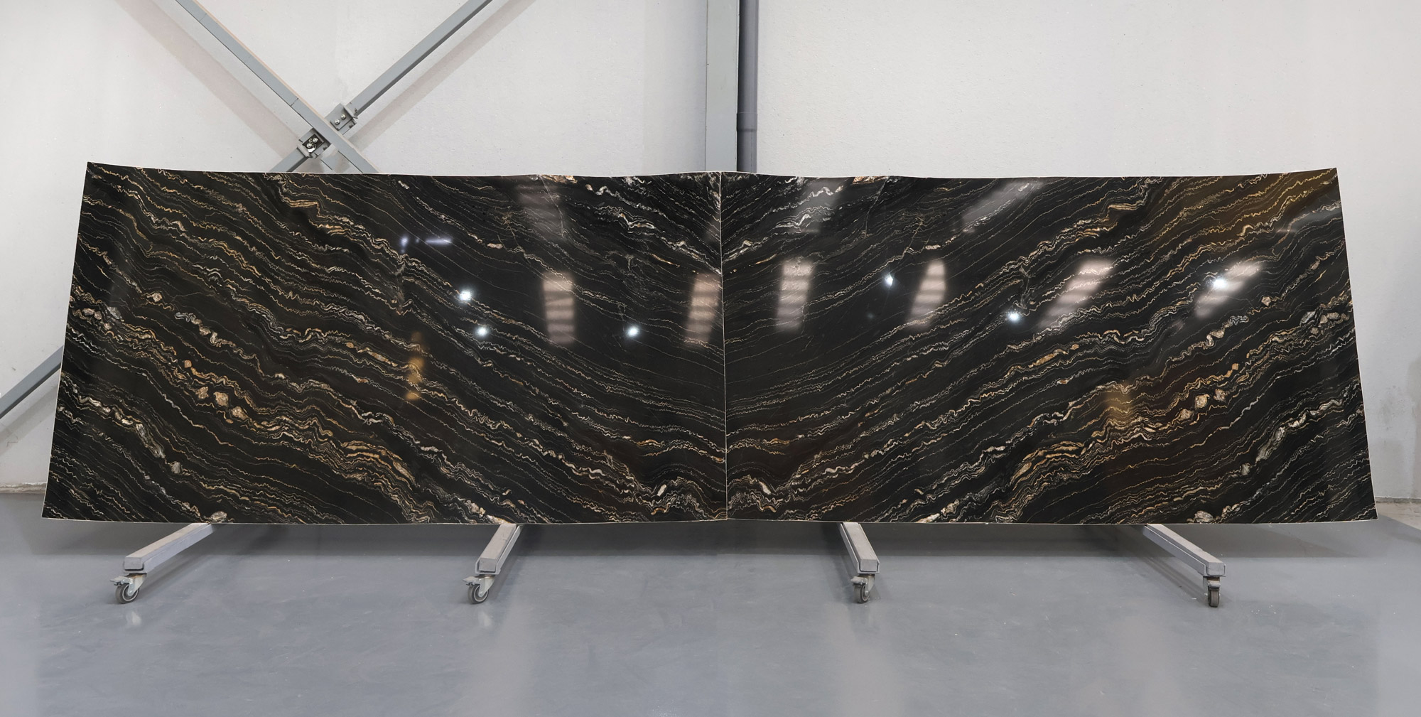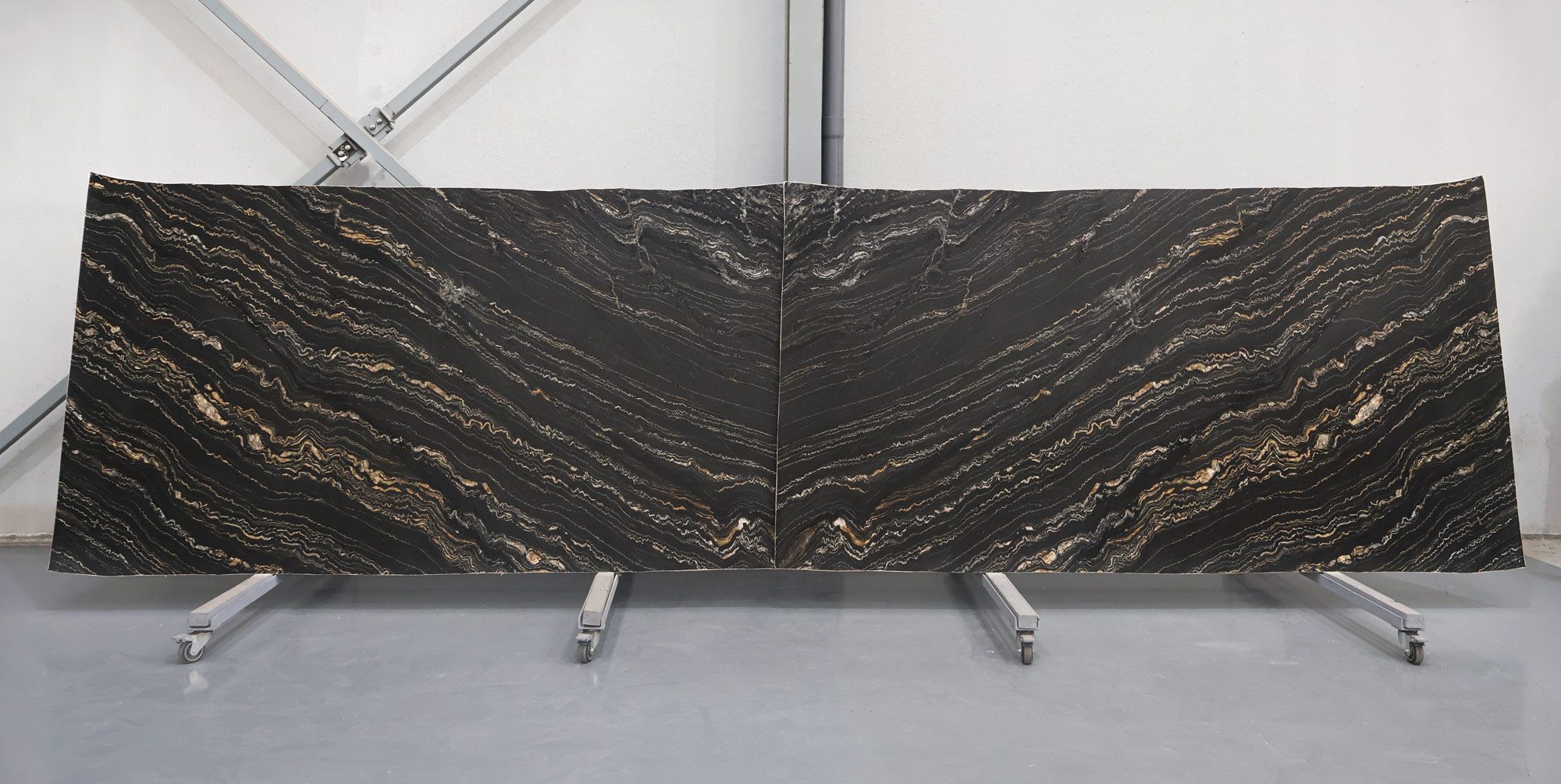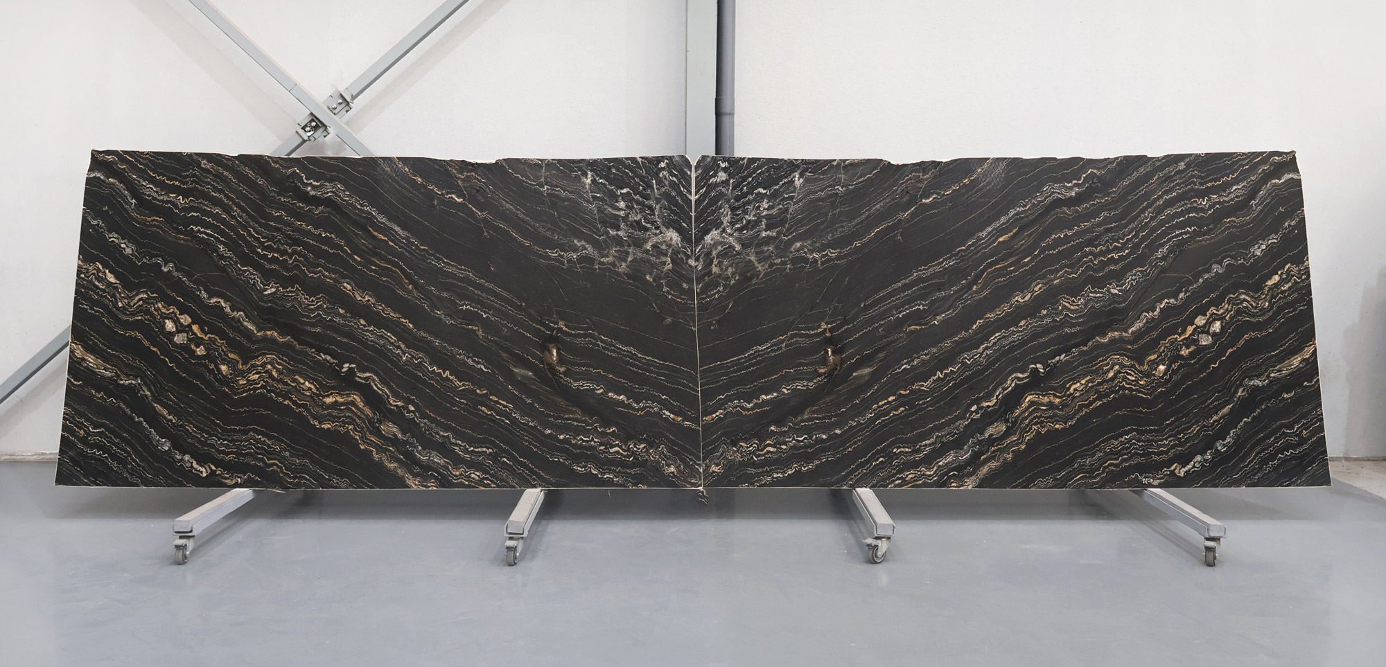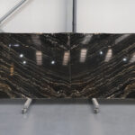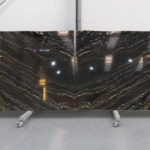 Quartzite Tropical Storm in 2 cm thick leather and polished slabs.