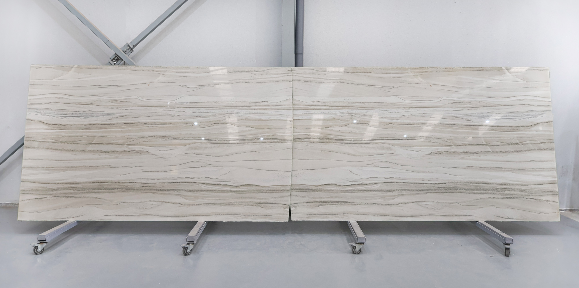 Quartzite Chantilly in 2 cm thick polished slabs.