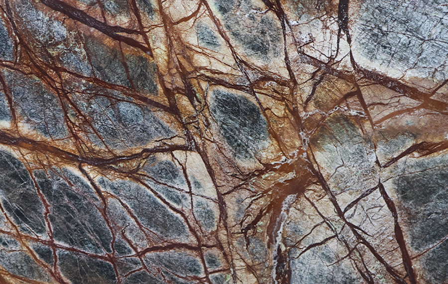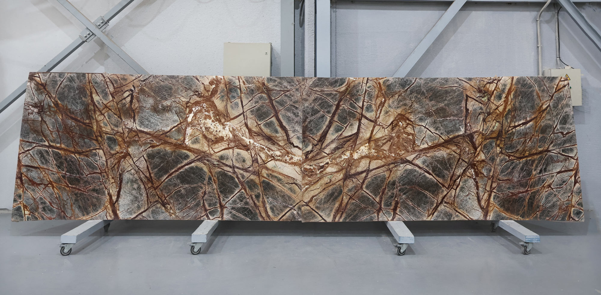 Rainforest Brown marble in 2 cm thick leather slabs.