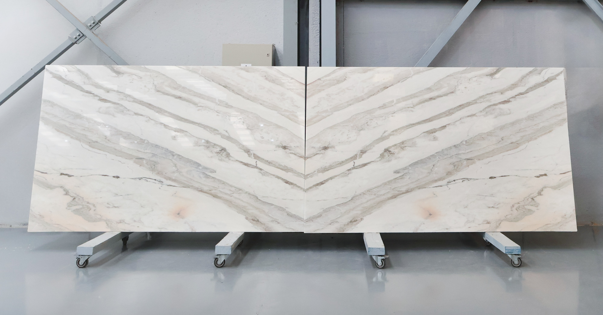 Calacatta Portuguesa marble in slabs 2 cm and polished.