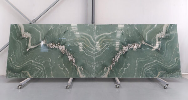 Quartzite Botanic Wave Green в полированных плитах толщиной 2 см.