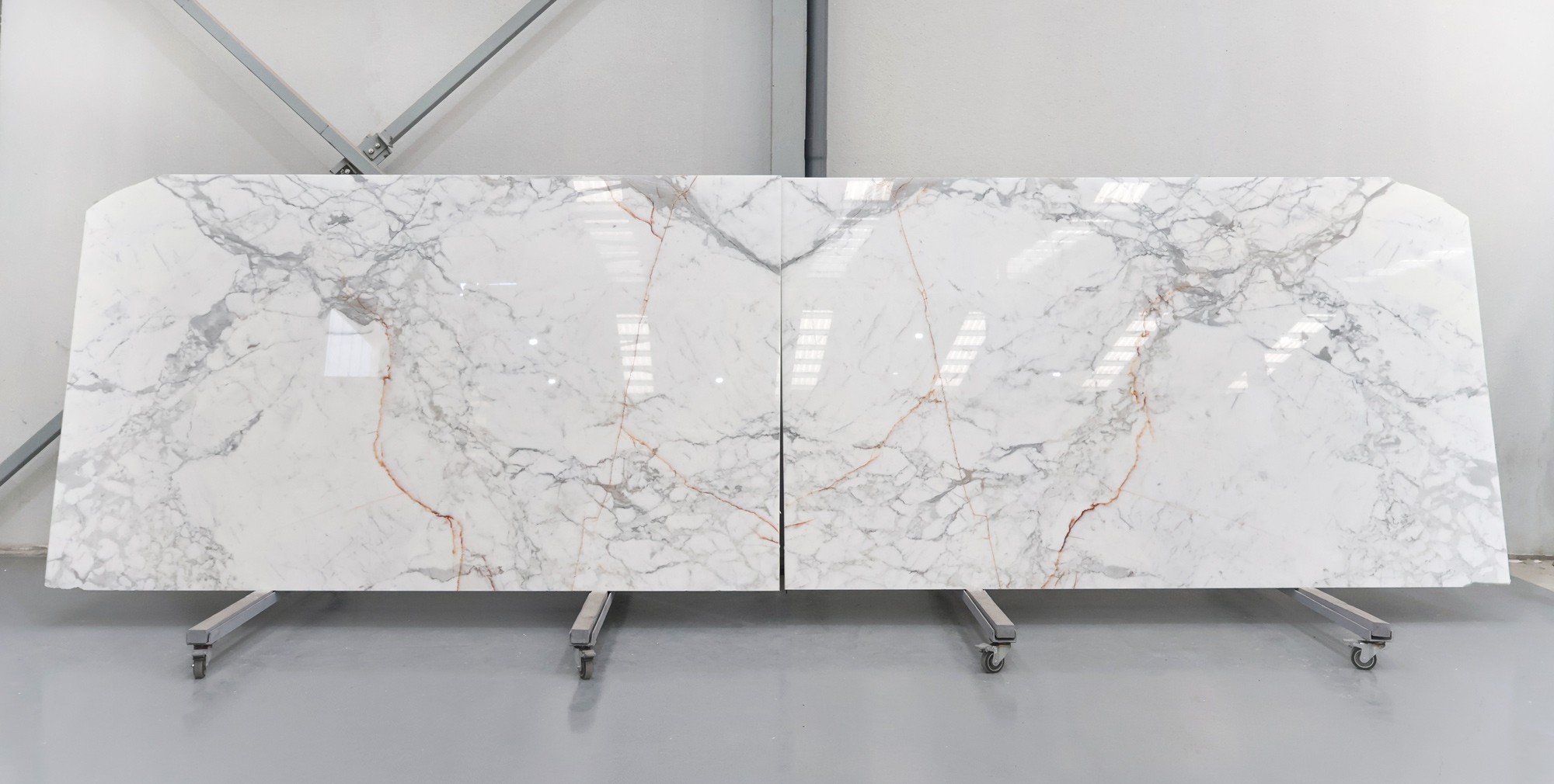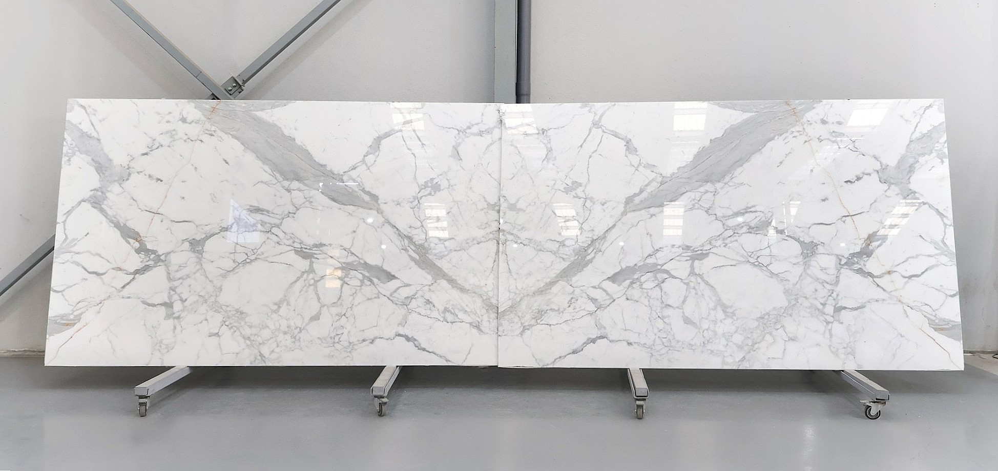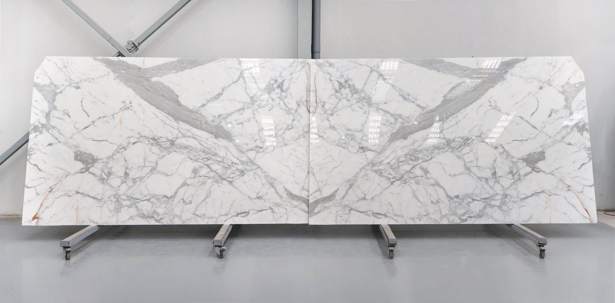 Мрамор Statuario в полированных слэбах толщиной 2 см.