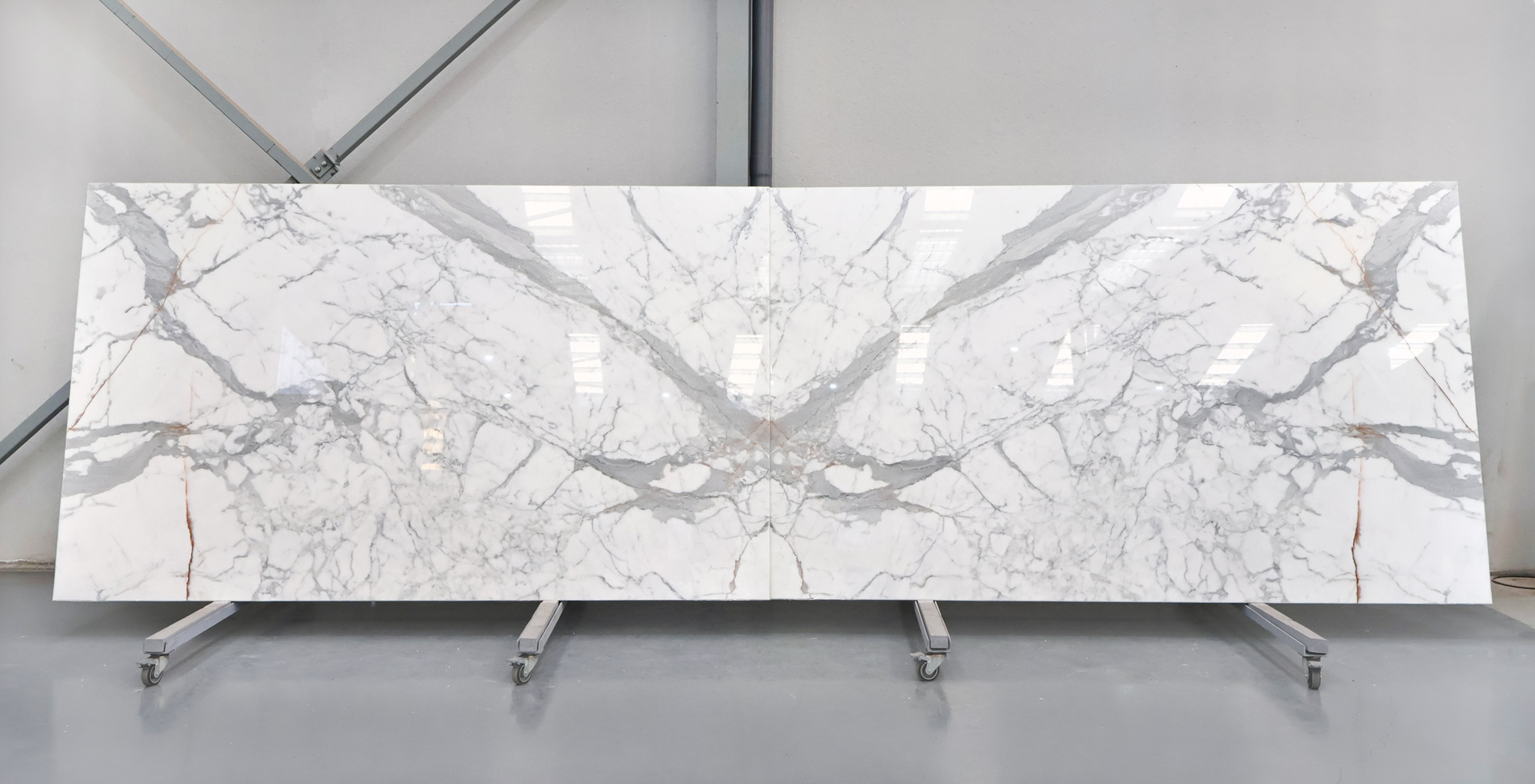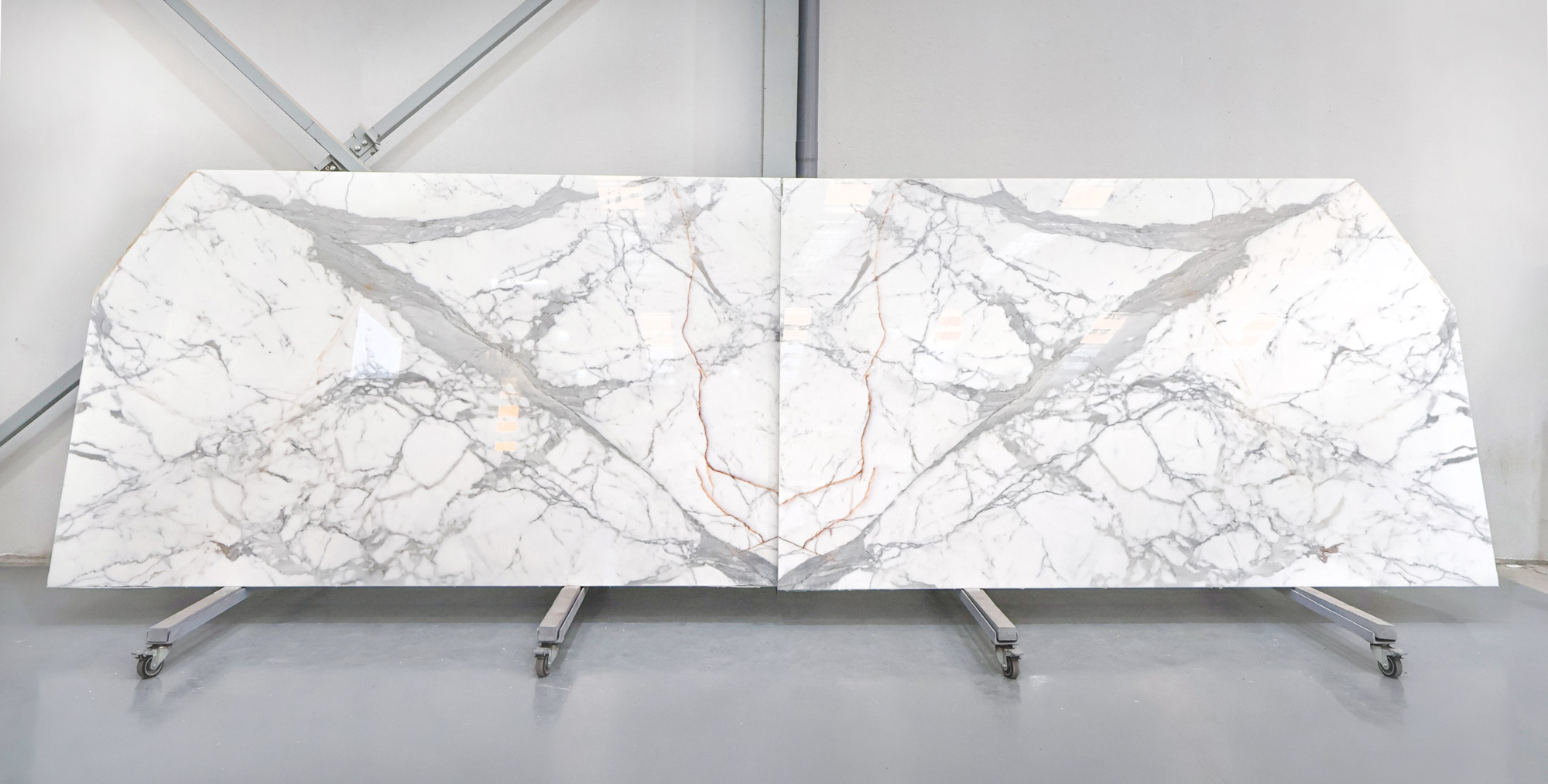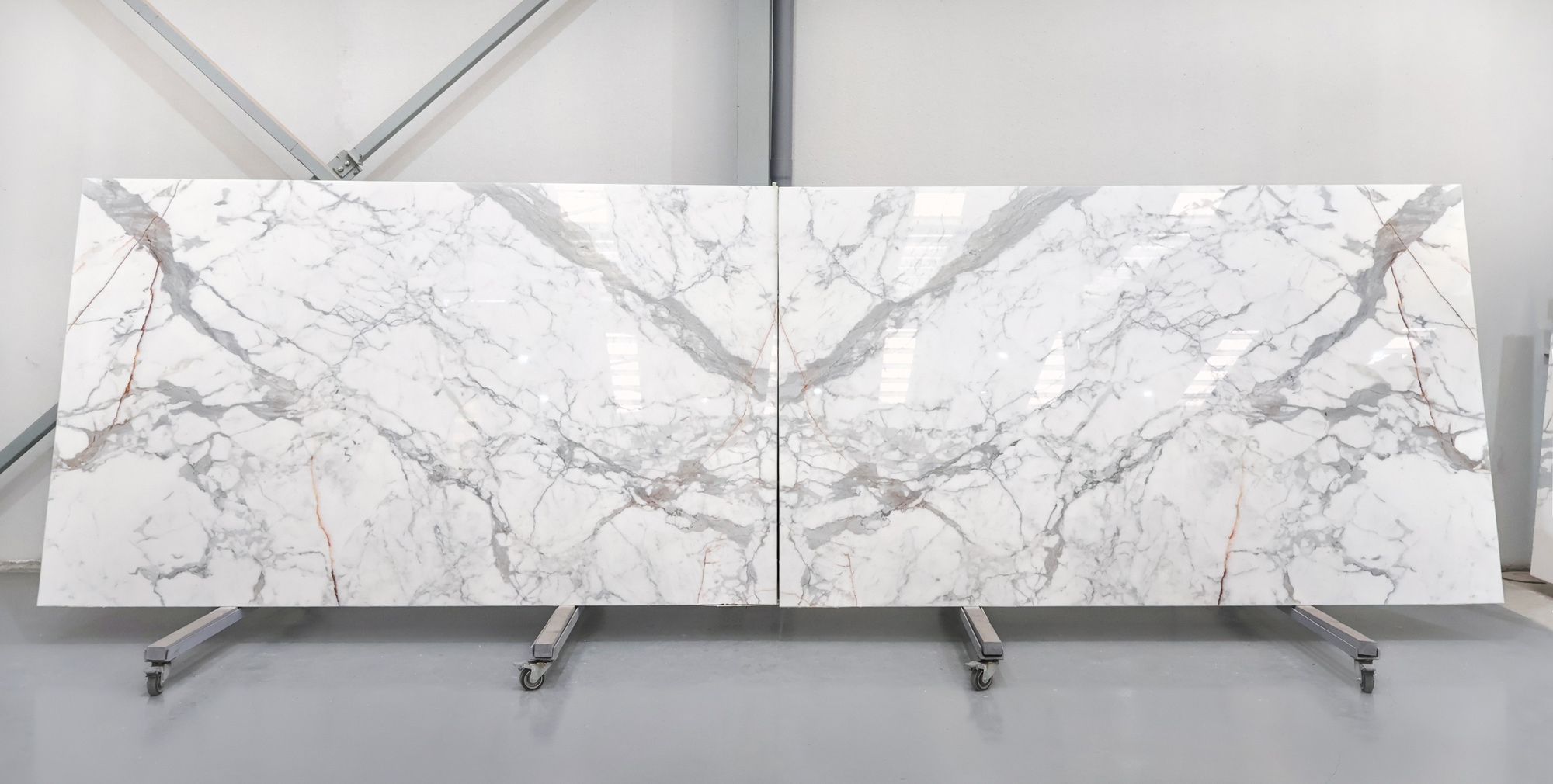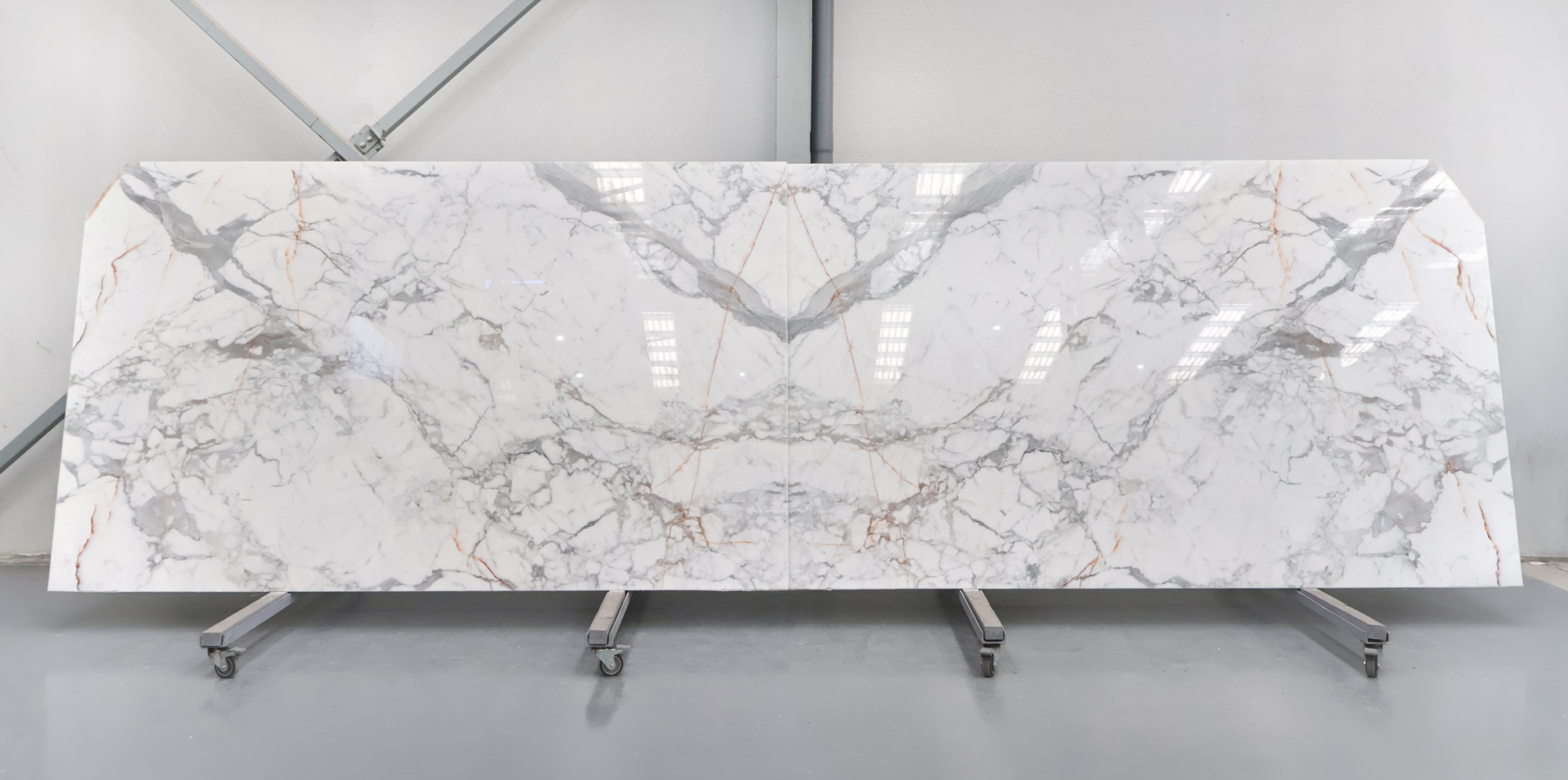 Мрамор Statuario в полированных слэбах толщиной 2 см.