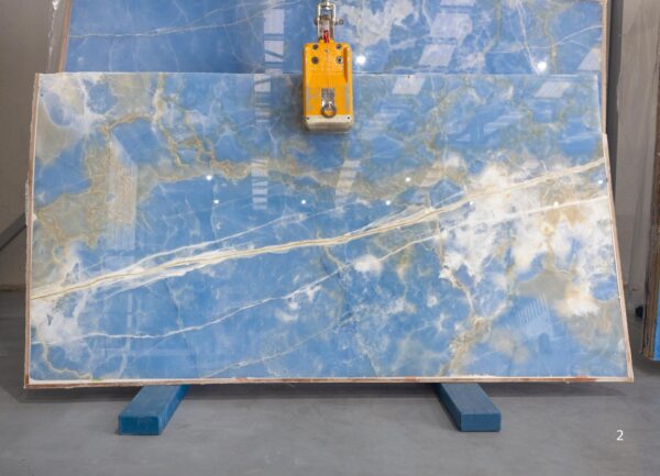 Like the tranquility of a calm sea or the infinite expanse of a cloudy sky, the Blue Onyx is a masterpiece of nature, where blue and white tones blend into the slabs. The white veins run through the stone like soft clouds, creating a dreamlike effect.
